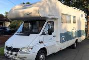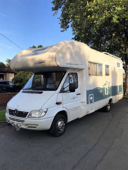 For further information please call us on 01423 609985. This Rimor Superbrig Racehome 747 is a spacious, 6 berth coachbuilt motorhome, built on a Mercedes chassis, with space and features for everyone to enjoy. This is a low mileage motorhome, having covered just 32,700 miles, with the renowned and powerful Mercedes 5 cylinder ,2700cc diesel engine. The standout features are, the simply enormous rear garage that means storage is never an issue, be it normal family items or bikes, motorcycles, and the like. The rear transverse bed above also has a door beneath for access to the garage, plus plenty of cupboard space. The good-sized washroom has toilet, sink and full shower enclosure. The kitchen is well equipped with SMEV oven, 3 gas burner hob, sink, large capacity fridge and freezer, plus a neatly stowed additional worktop that can be raised when required. The dinette area has a side sofa next to the door, then forward-facing seats with full seat belts and opposite a bench seat opposite, with 1 full seatbelt and additional lapbelts. An additional seat can be added to create a real cosy lounge area. Up front there is a 5-speed gearbox, travelling and reversing camera, cruise control, electric windows and door mirrors plus radio, CD. Above is again a large overcab bed, with windows on both sides. The motorhome benefits from a large, full length awning, gas heating system and will come with a new MOT for this powerful Mercedes motorhome. This is in excellent condition and is an ideal motorhome for extended periods away from home. Part exchanges are welcomed on this vehicle, for further information please call us on 01423 609985 quoting reference number 135166