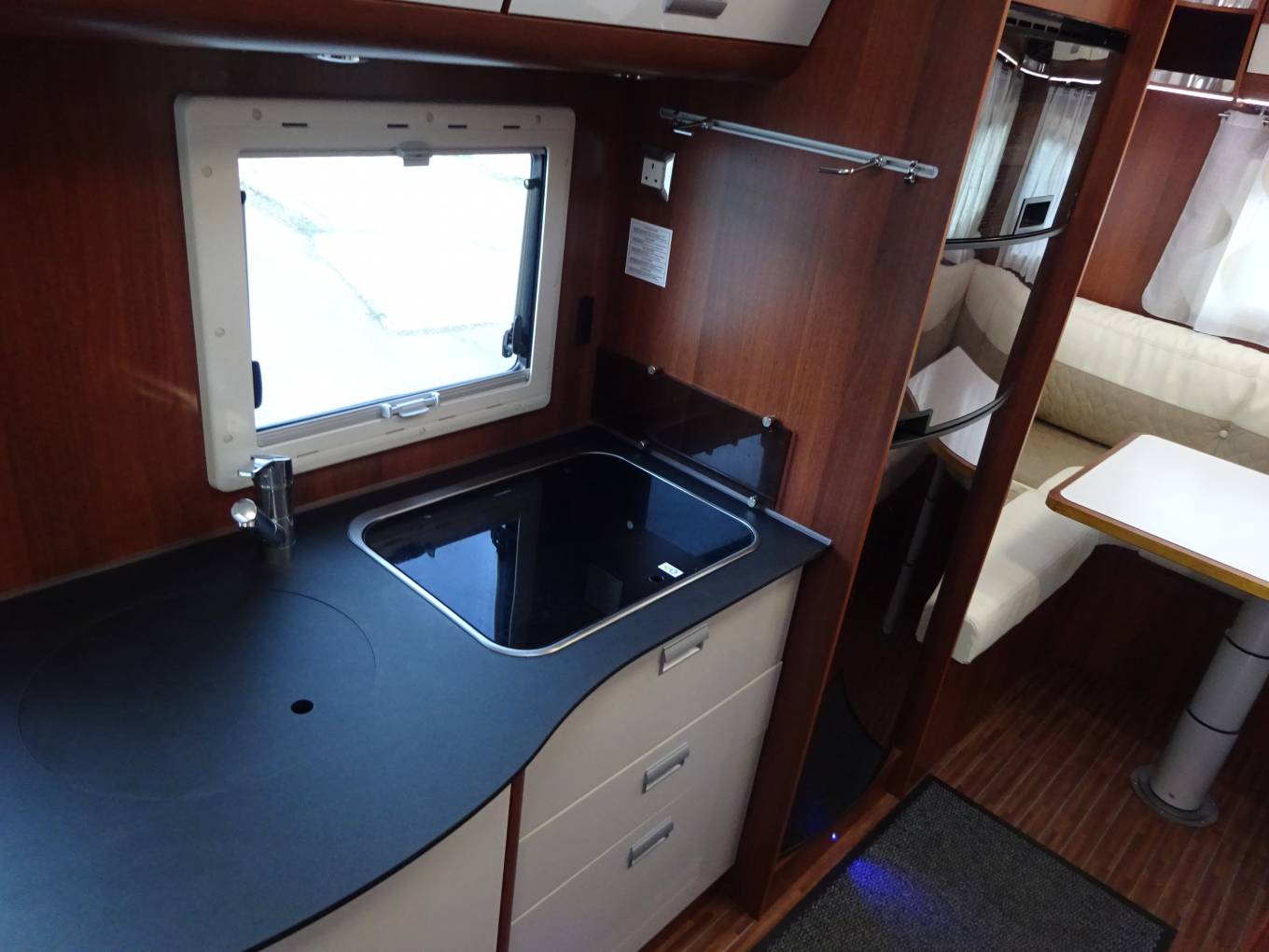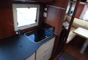 Sleeping arrangements are provided through a large overcab bed and conversion of the lounge areas.
