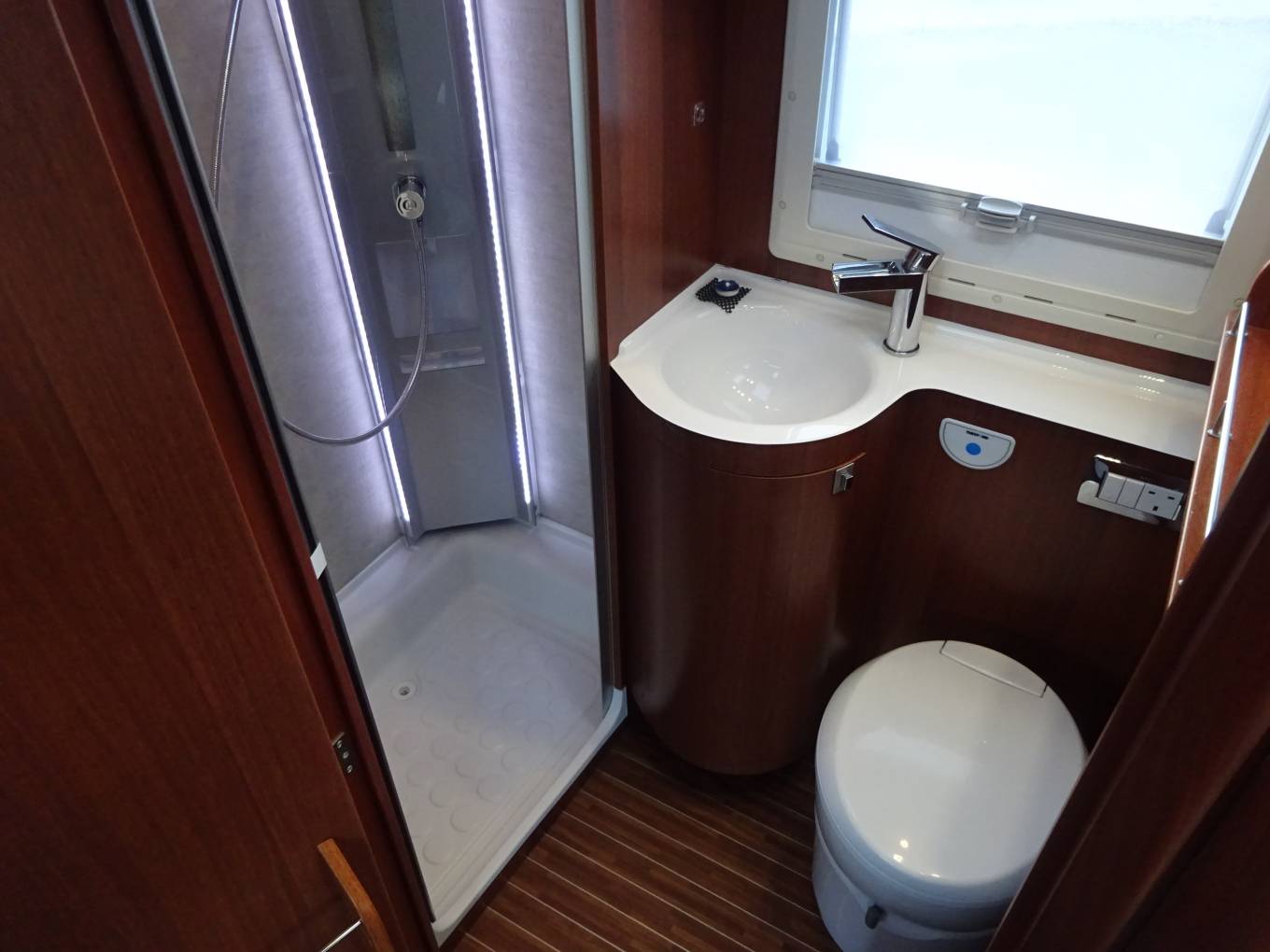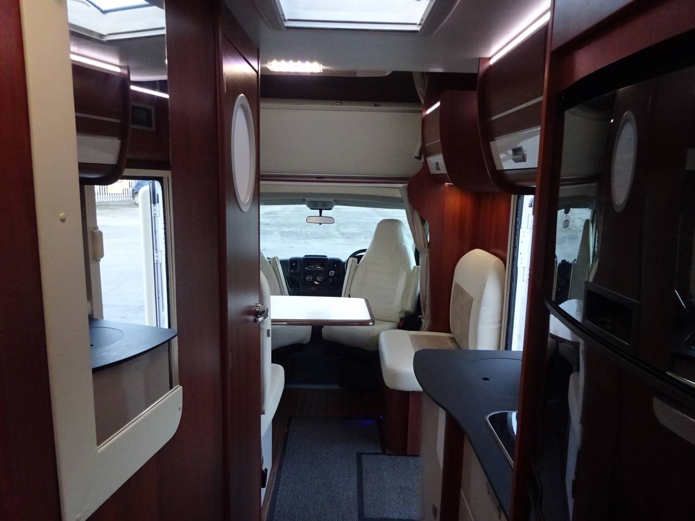 Powerful 130bhp Fiat Ducato 2.3L, captain’s style swivel seats, cruise control, air-con, 6-speed gearbox. 7.17m length and 3500kg weight.