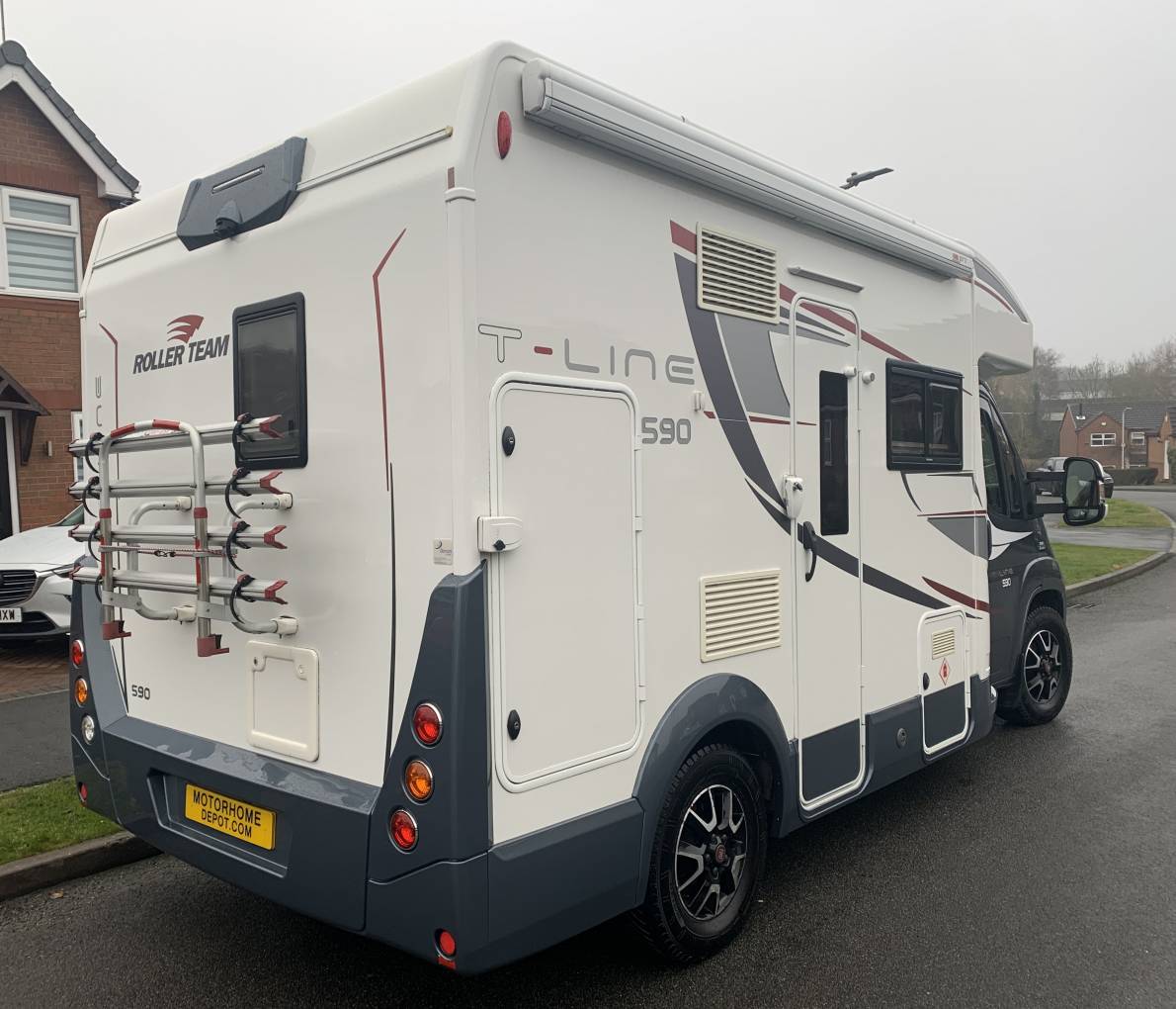 Additional extra features, above standard specification include, TV, bike rack, wind out canopy, Wi-Fi (subscription needed), 2 solar panels, 2 Gaslow refillable gas bottle, 2 leisure batteries, Fiamma door locks, 6 kw heating, centre console with Bluetooth and sat nav integrated, magnetic habitation door retainers and external storage box. For security it has a Cat 1 alarm and Tracker.
