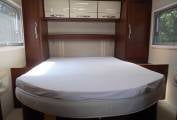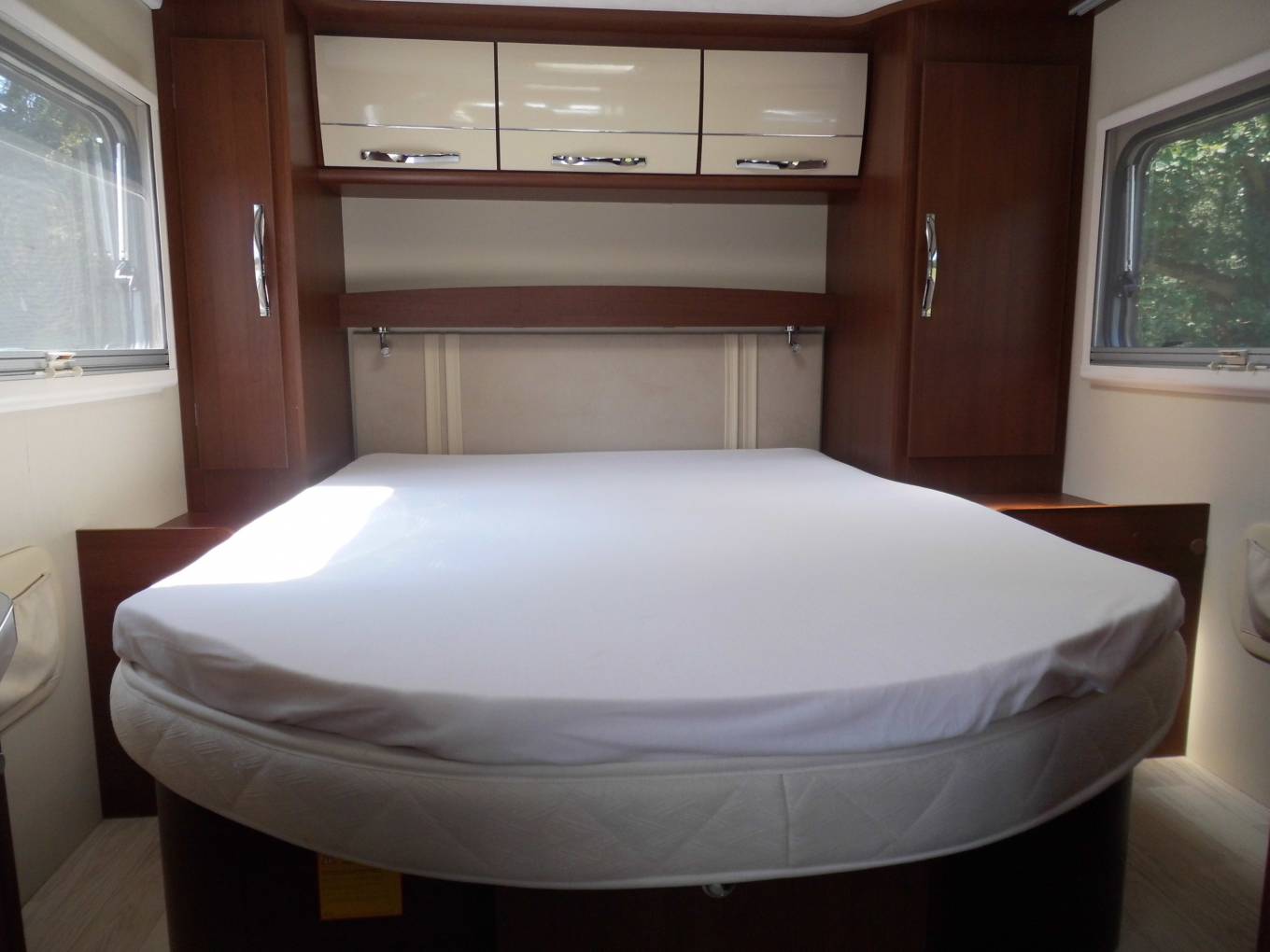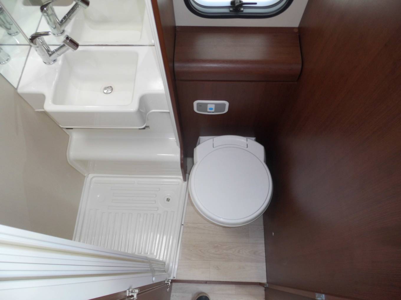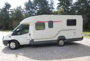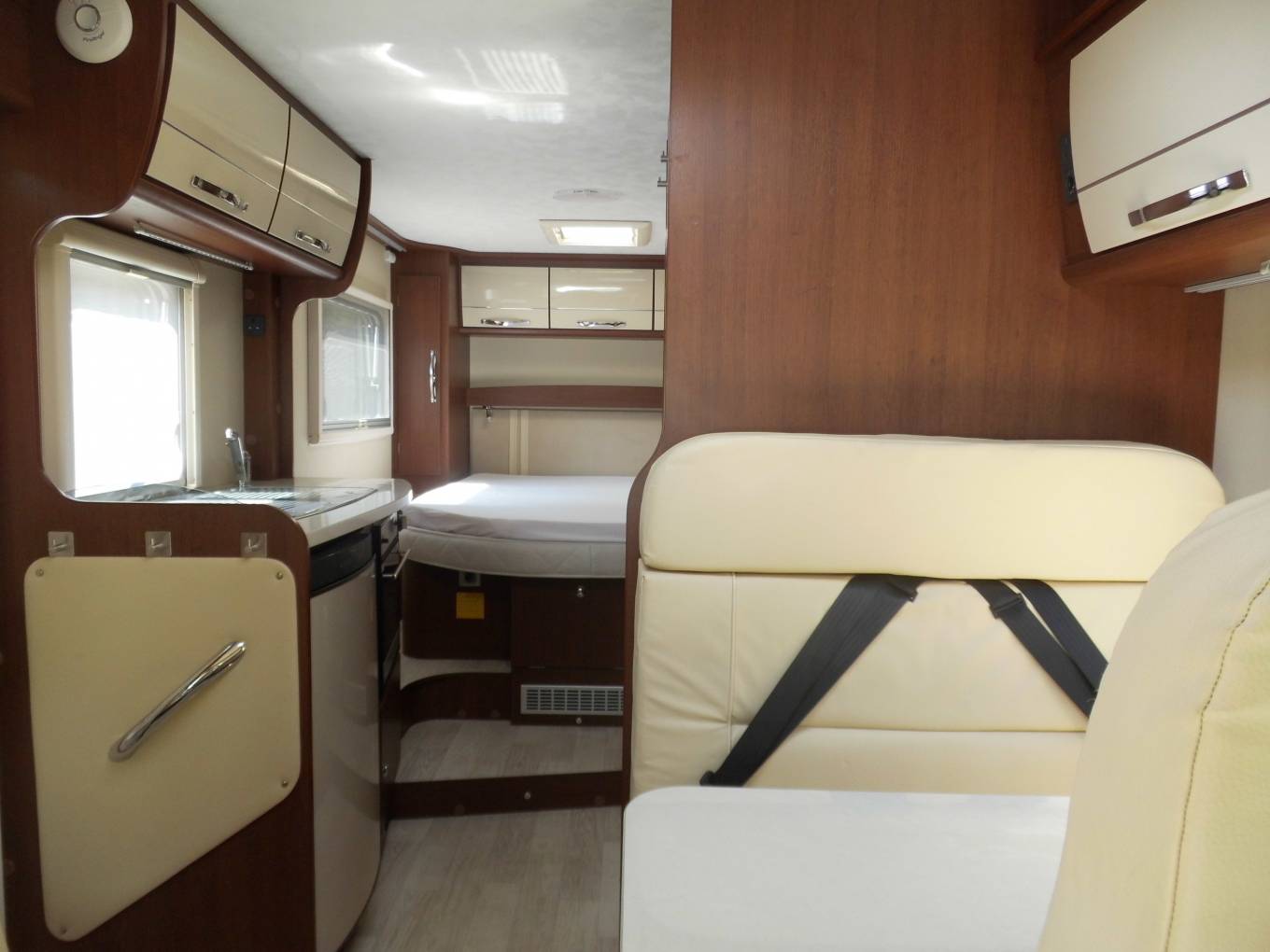 Rollerteam Autoroller 695 3 berth motor home with rear fixed island bed and 4 seat belts with leather upholstery. Built on a Ford chassis with a 2.2cc diesel engine right hand drive, 6 speed manual gearbox. On entering the motor home through a side door, immediately to your left is a lovely kitchen area containing a 3 ring gas hob with a glass lid, a fridge freezer and a sink/worktop area. Moving to the front of the motor home is a spacious lounge area dining table which also converts into a small bed. Both of the front seats swivel making it a perfect socialising area. One of the sofas is front facing with two 3 point seat belts. Moving to the back of the motor home there is a very nice fixed double island bed with storage underneath. To the Left of the bed is a spacious light and modern washroom, consisting of toilet, white gloss, mirror vanity units washbasin and a good size separate shower. Each window has fly screens, blackout blinds. There is ample lighting throughout the motor home making it nice and light. The flooring is a vinyl wood effect flooring and comes with removable carpets. There is a large sunroof in the centre of the habitation area.