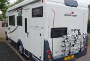 It has an awning with 12v strip lighting, interior mood lighting, a Gaslow system, and a bike rack that holds 4.