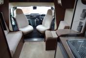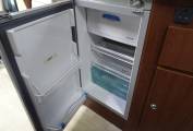 The midship kitchen comprises of a 3 gas burner hob, a 3 way fridge with freezer compartment, a grill, a stainless steel sink and storage cabinets for all your essentials. Towards the front there are 2 side sofas with both of the front captain seats that swivel creates a spacious well lit area to dine and relax in.
