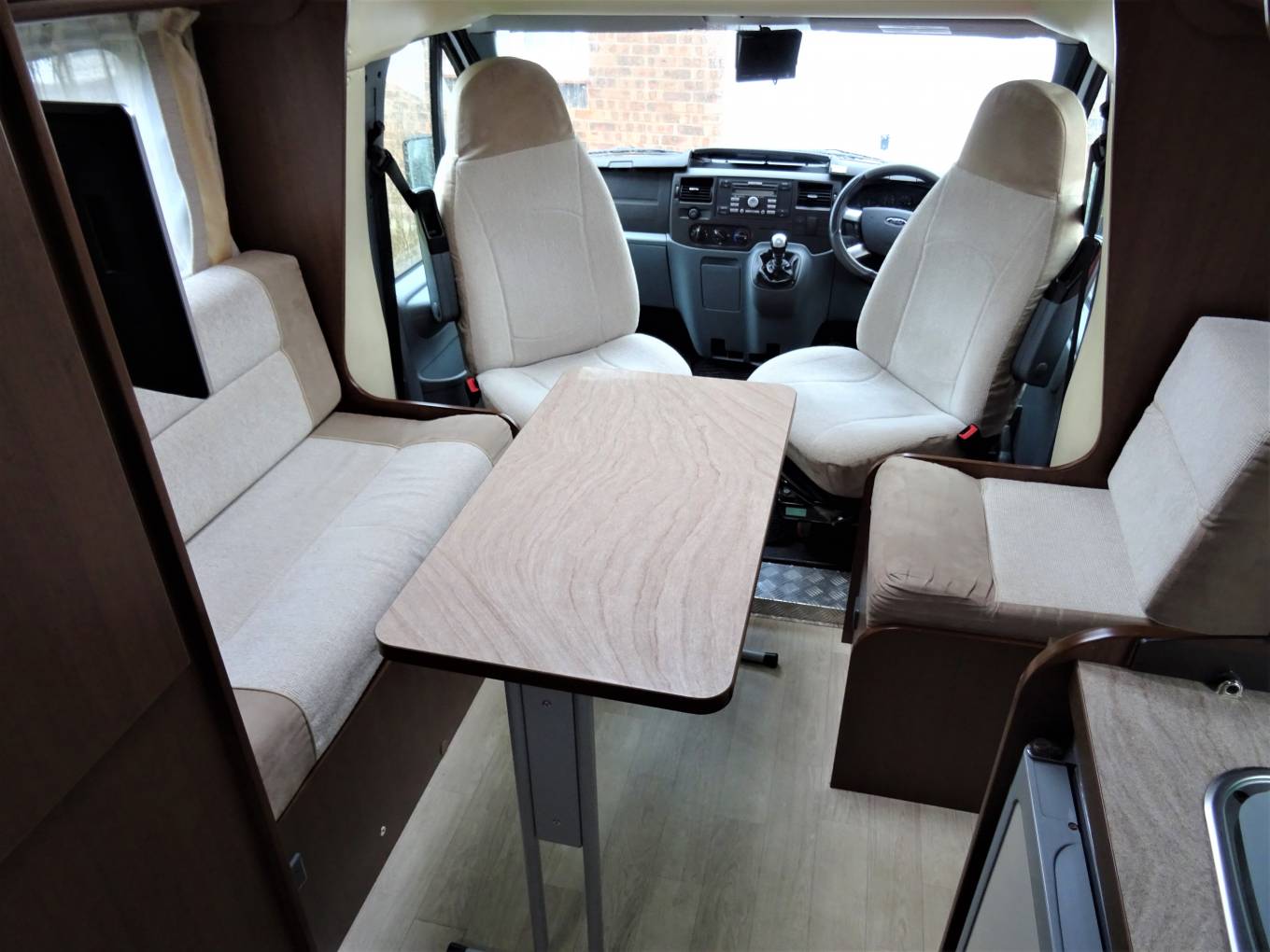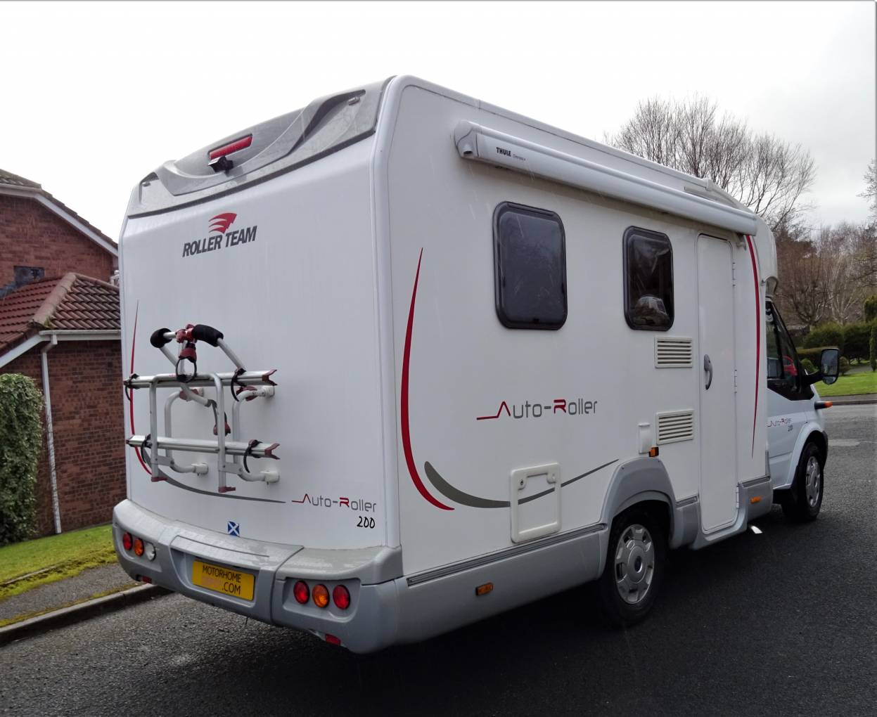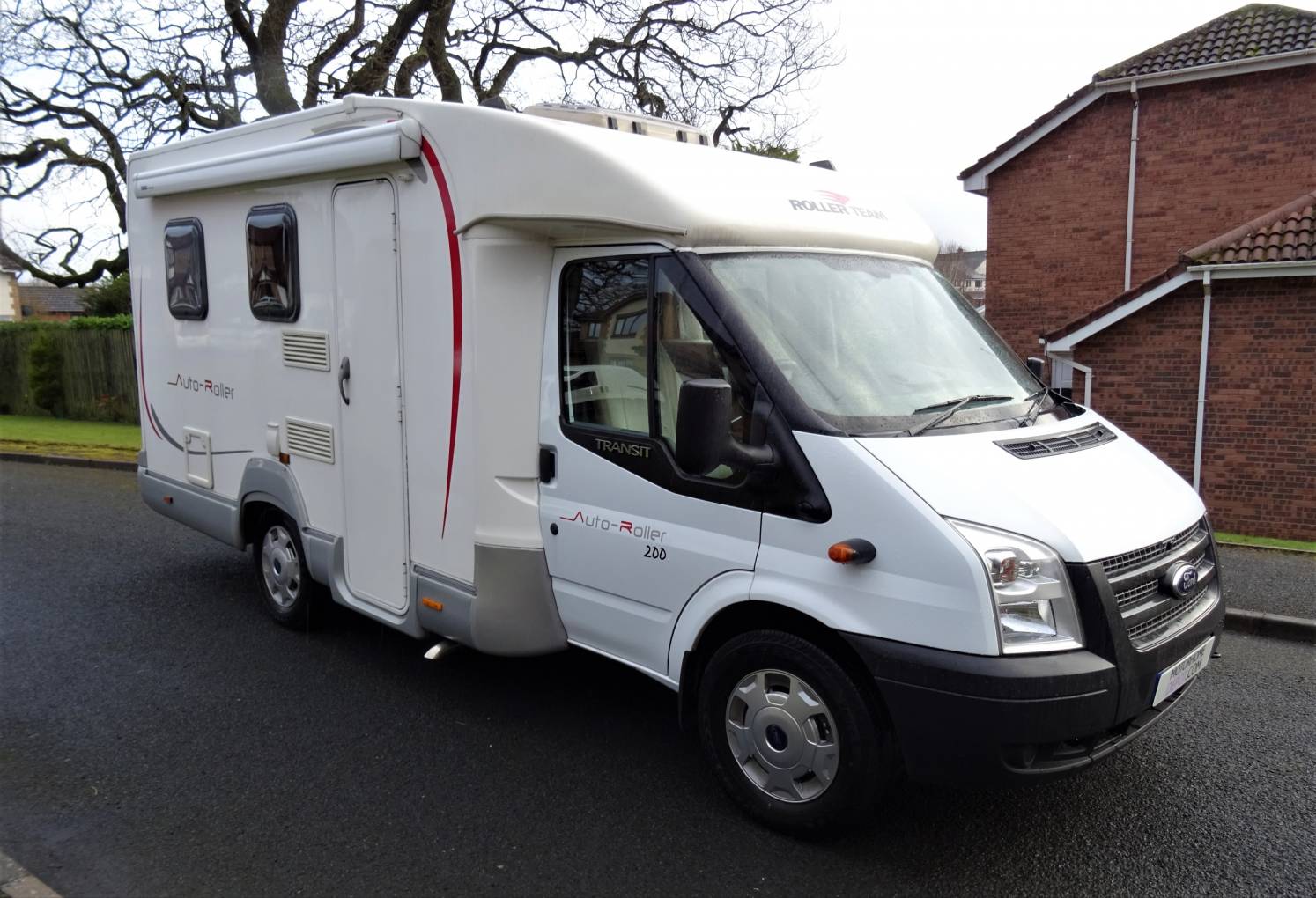 We have the pleasure to present a fantastic Roller Team Autoroller 200 Motorhome. This low profile motorhome is built on a Ford Transit chassis and measures 6.25 metres in length and 2.3 metres wide. It has a 2.2 litre engine, a manual 6 speed gearbox, cruise control, driver and passenger airbags, electric windows, radio cd player, 2 swivel seats and is plated at 3500 kg, so can be driven by anyone without age restrictions. and has travelled only 24,700 miles since being first registered in 2012.