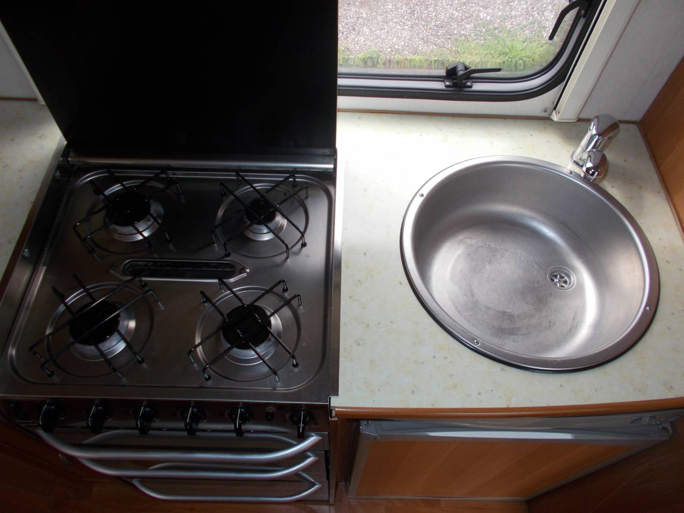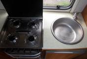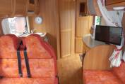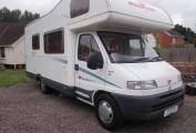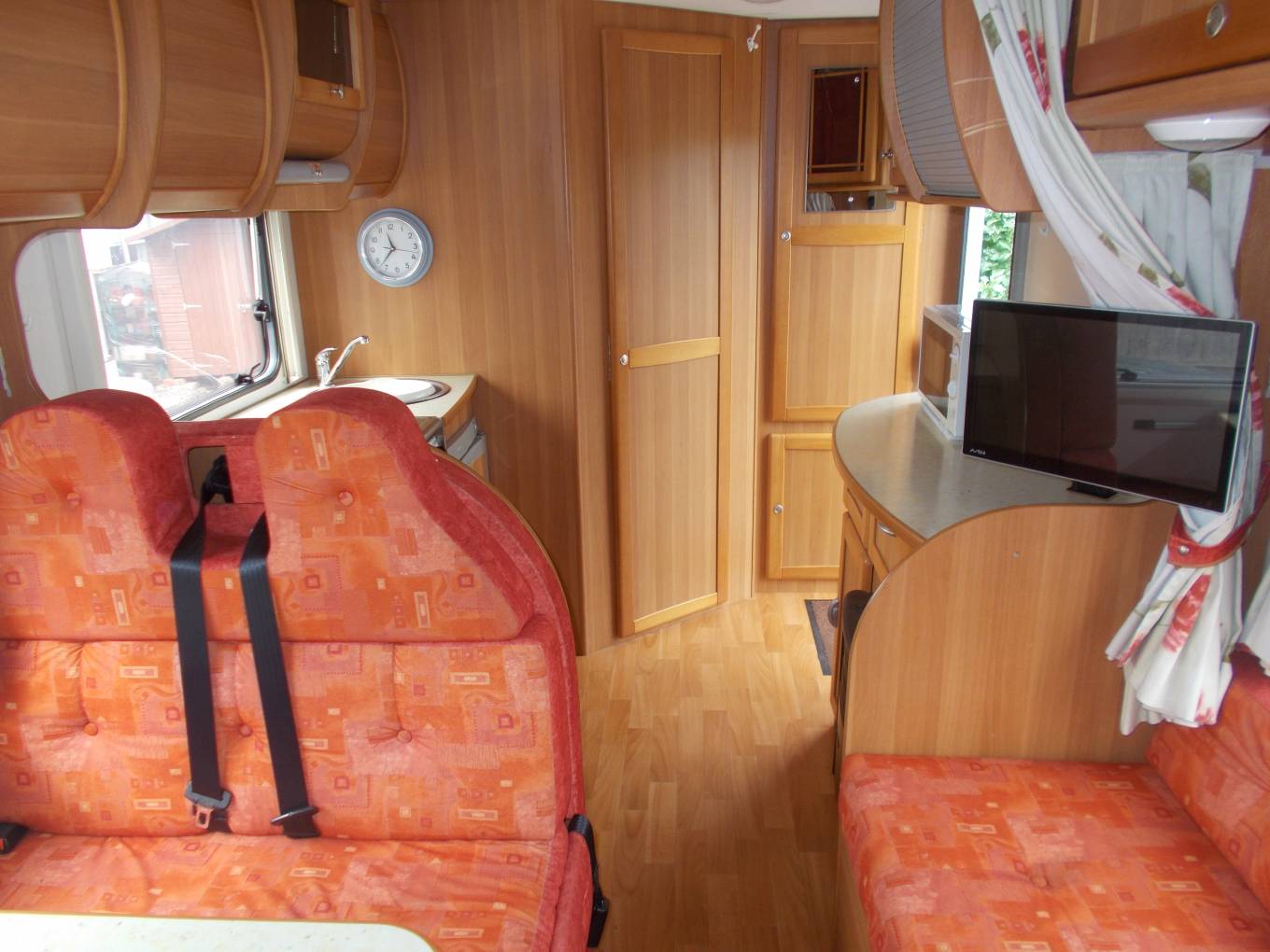 A really versatile and very low mileage turbo diesel motorhome with up to 6 berths and 6 travelling seats with seat belts. On entering the accommodation at the rear via the twin electric steps, the fully equipped kitchen including microwave is opposite and the large washroom to the rear. There is a large double berth over the cab, a dinette which easily converts to another double, a long sofa which is another single bed, and a further bunk bed over the sofa. This bunk looks like cupboards but cleverly opens out when needed to be the 6th berth.