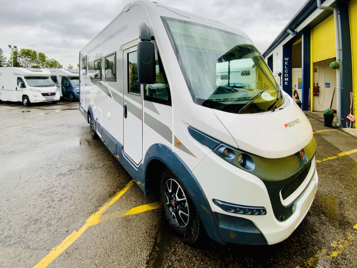 A-class with an Island Bed The Pegaso 740 features its very own rear bedroom offering a comfortable double bed complete with built in wardrobes, underbed storage and a shared en-suite. Separated by a mid-transverse washroom, the second double, in the form of a modern drop-down double over the cab, also has a great level of privacy with wrap around curtains. The Pegaso 740 truly caters for all combinations of travellers and ensures each is guaranteed an ultra-comfortable stay whether you take a short weekend break or extended tour across the continent. Extra features These are in addition to what this motorhome typically comes with as standard: Bluetooth Bike Rack Cab Air Conditioning Alloy Wheels Cassette toilet Blown Air Heating Double Beds 12v Power End Bedroom Exterior Gas Bottle Locker Fixed Bed Fridge/Freezer Leather Upholstery Leisure Battery Oven Reverse Camera Shower Solar Panels Spare wheel Swivel Chairs Toilet TV Aerial Wardrobe smoke detectors