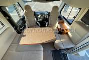 We enter the Motorhome on the drivers side immediately to the right of the habitation door is a single side seat opposite is the dinette with an L shaped Sofa, the forward facing 2 seats benefit from 2 x 3 point lap & diagonal seat belts for travelling passengers. The dinette table is fixed to the floor and can be centralised in the area, the front two seats rotate to join so you could easily seat 5 people while entertaining on site. There is a TV point to the left of the habitation door.