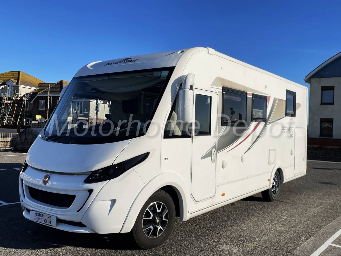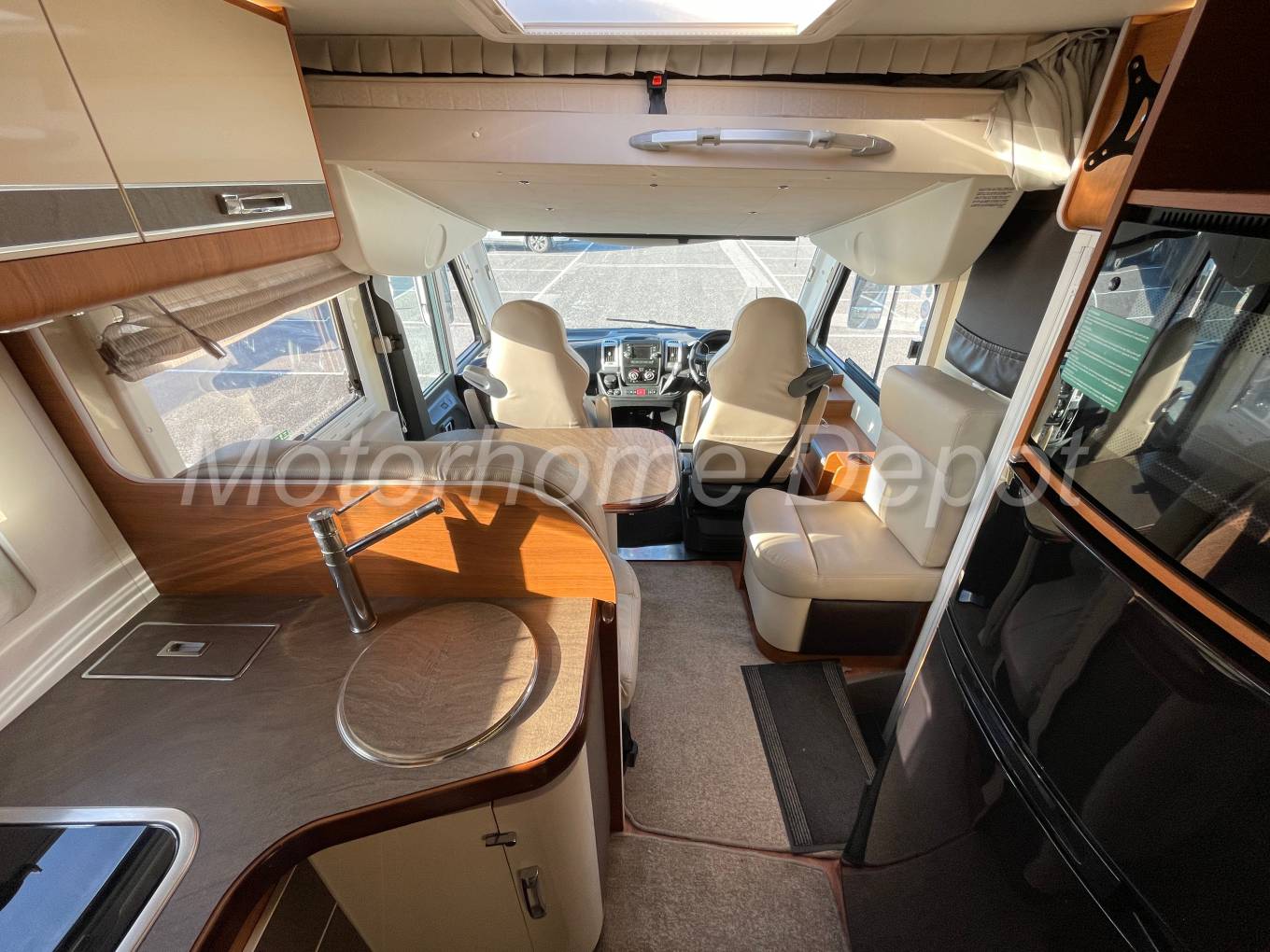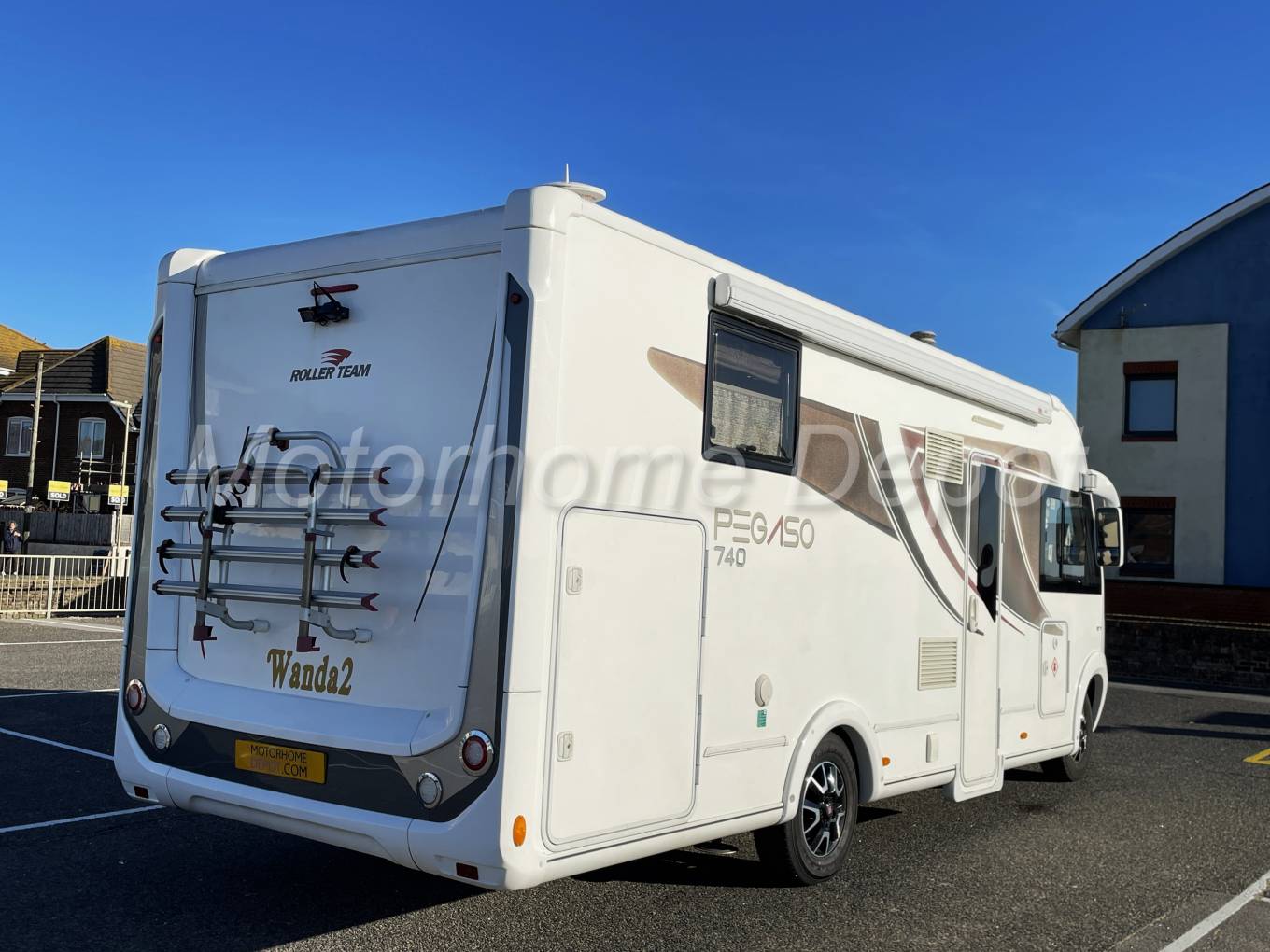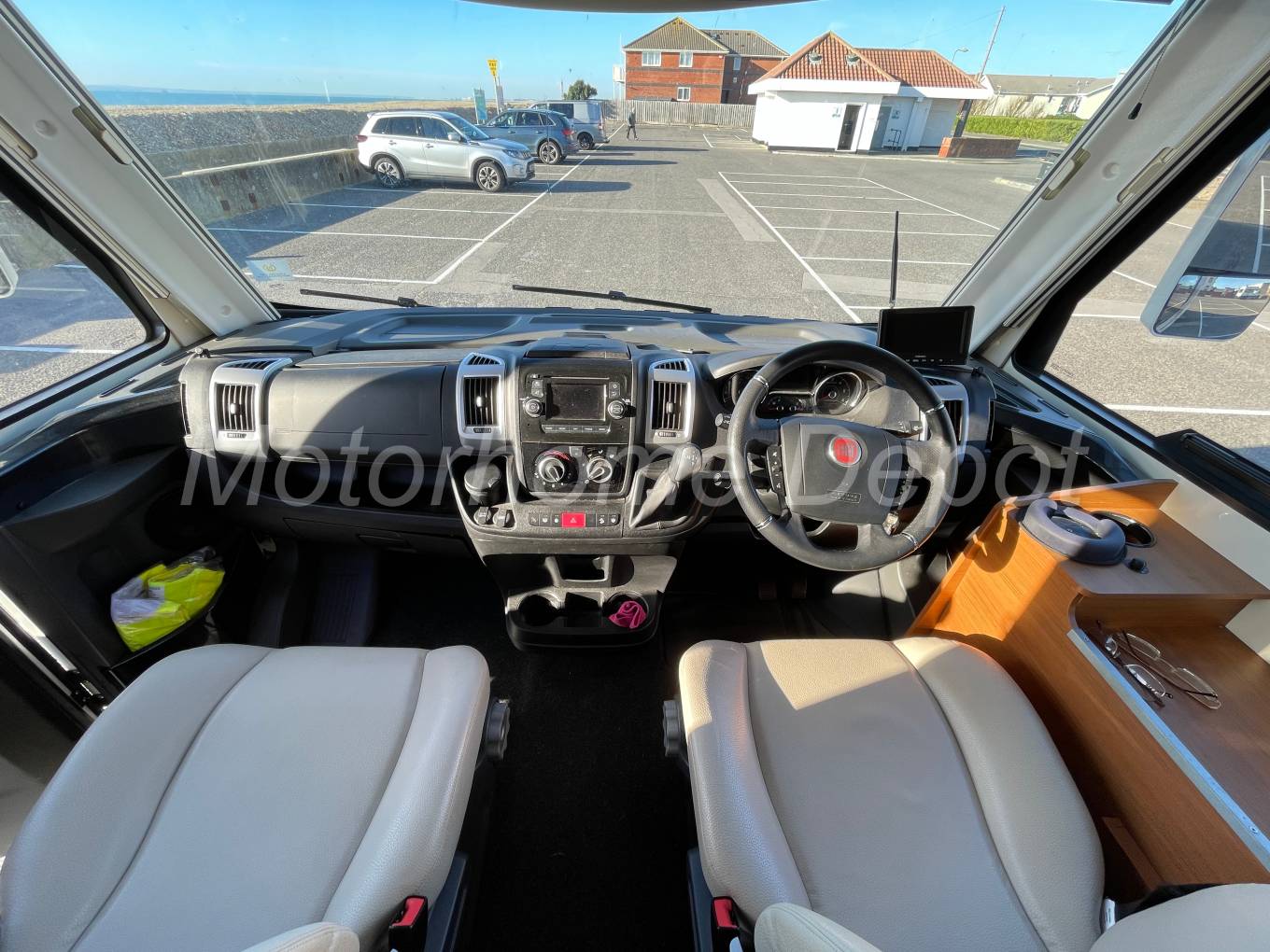 From the Roller Team stable comes this stunning A Class motorhome the Pegasu 740 a modern design with a luxury feel. Based on the ever popular Fiat Ducato chassis with the 2.3 litre Multijet diesel engine in its 150 BHP form and the Comformatic 6 speed Automatic gearbox. The vehicle has had 3 mechanical services the last being 06/23 at 15675 miles. It has also had 4 habitation services the last being 07/22. The cab benefits from: power assisted steering; air conditioning; cruise control, multi function steering wheel; electric window near side; electric adjustable heated mirrors; hill descent; traction control plus; Reverse camera screen; Fiat Double din multi media head unit with: single cd; Bluetooth phone and streaming; Tom Tom navigation. Remis style front and side blinds.