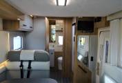 The outstanding feature of this lovely motorhome is the fully motorised drop-down bed that is stored in the roof of the living area. This large bed is very simple to operate and the smooth mechanism allows you to bring the bed down at the touch of a button, ready for an extremely comfortable nights sleep. In the morning it can once again be raised out of the way, to restore a stylish, living space to enjoy the day in.