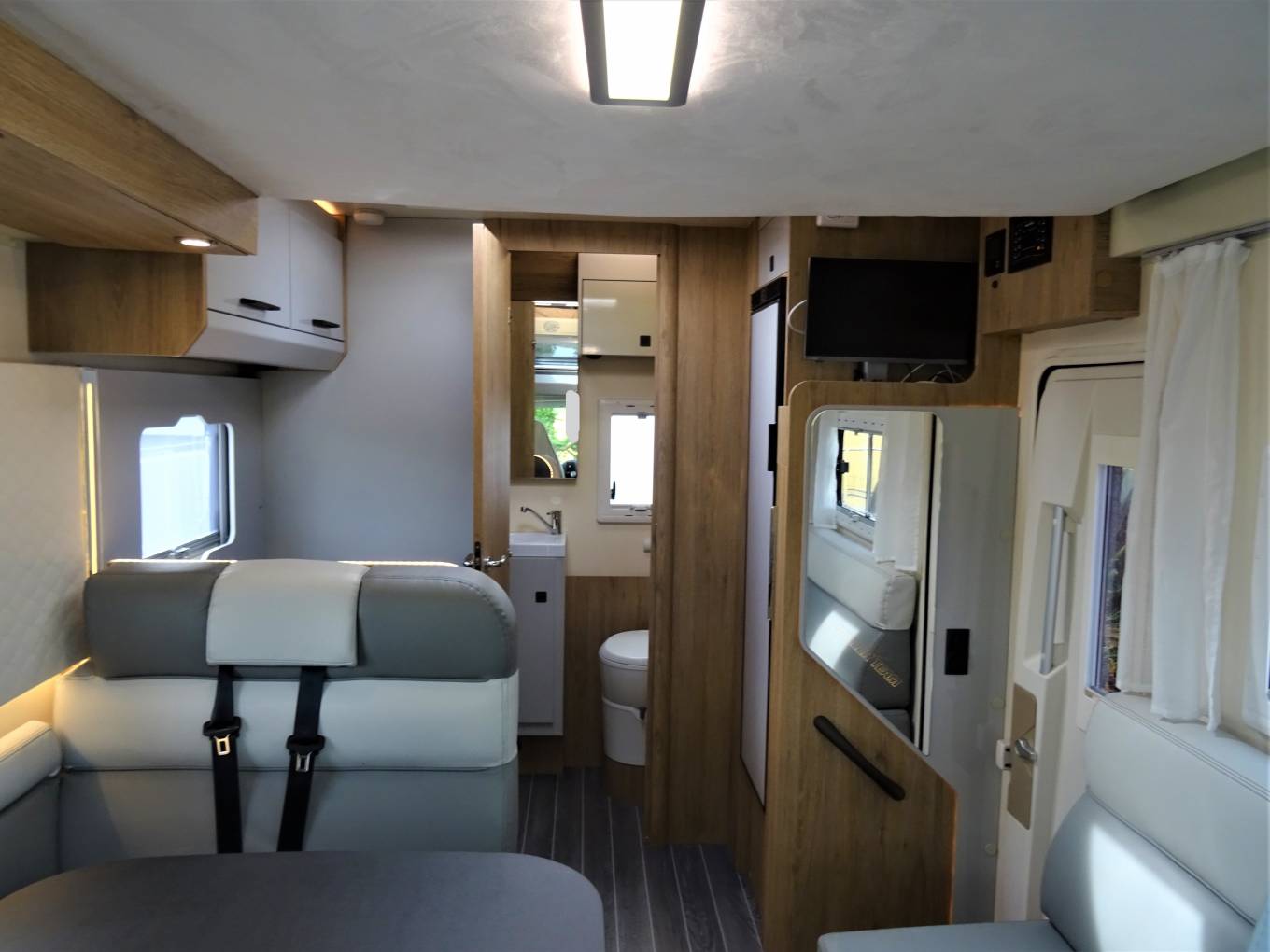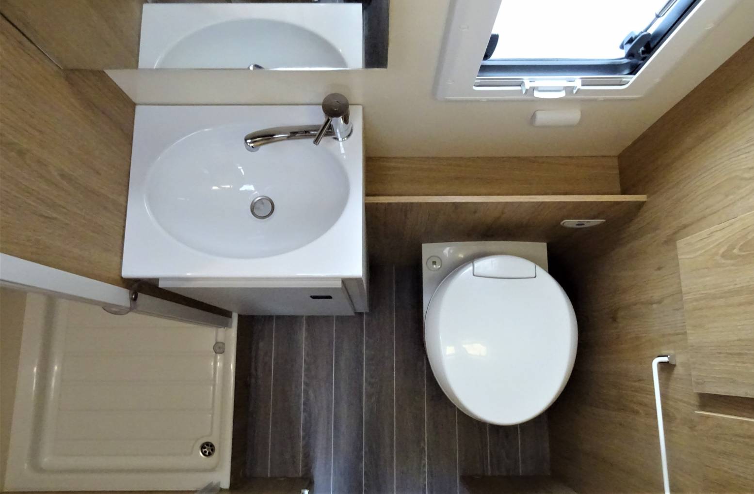 Starting at the rear of the Motorhome there is a good sized washroom with cassette toilet, wash basin with mixer tap and a separate shower wardrobe.