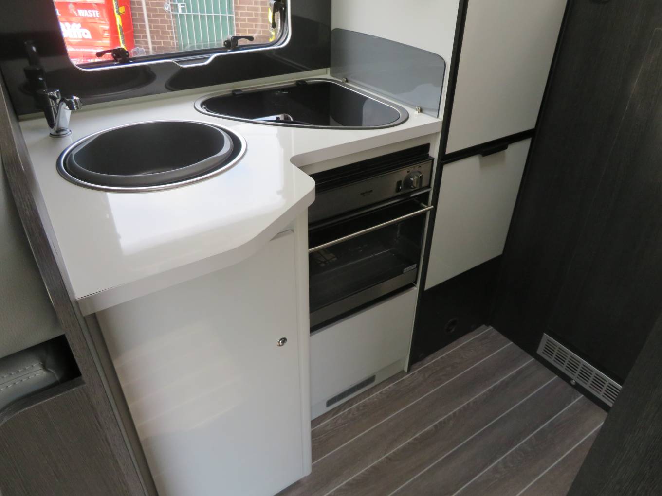 In the kitchen area, there is a large 3 way fridge, a gas oven and grill, a gas hob and loads of storage for everything you need.