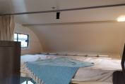 cab bed, rear transverse bunks and front dinette which is easily converted to a
