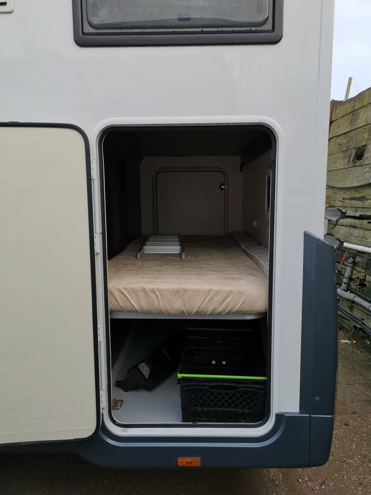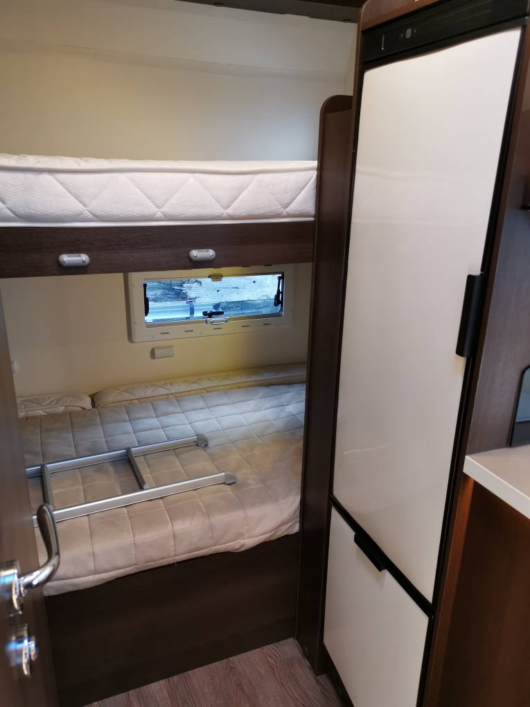 rear transverse bunk beds with the bottom bunk doubling up as a large garage