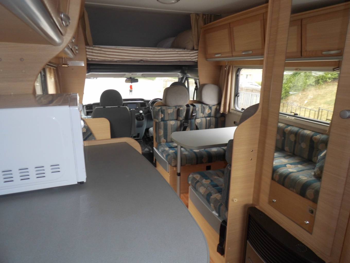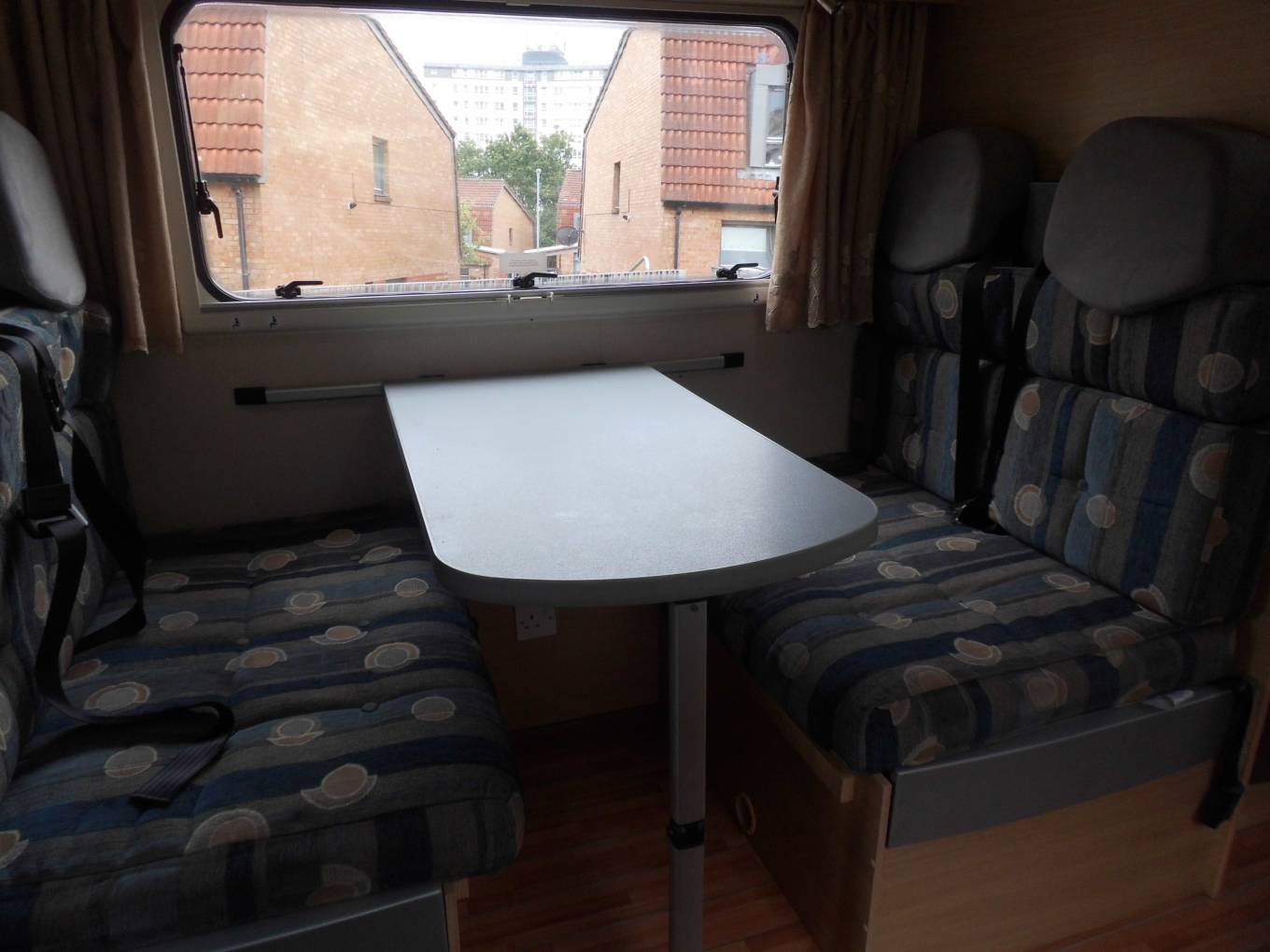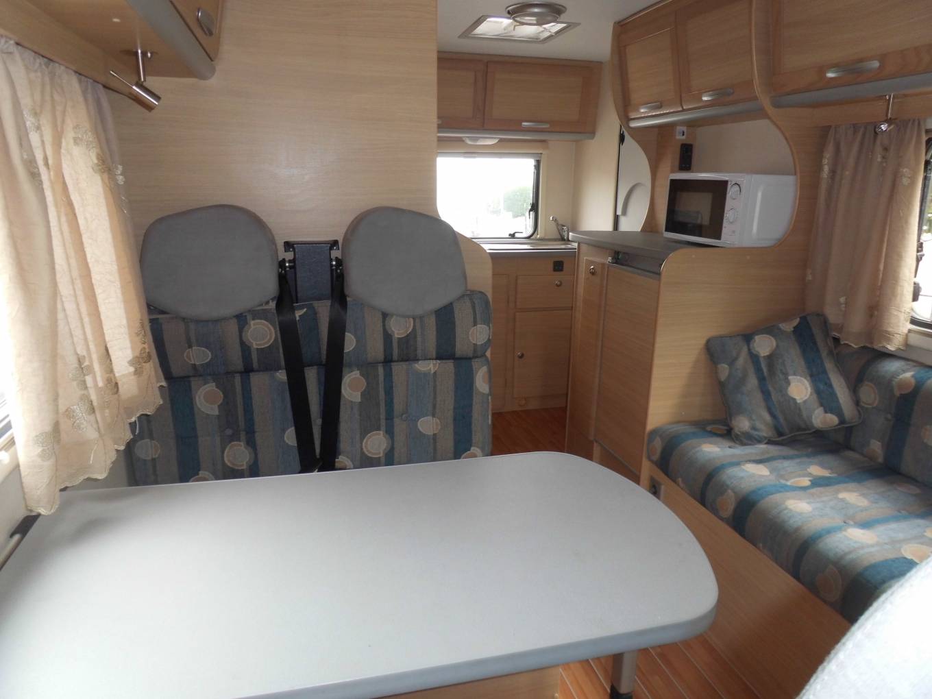 We are presenting a Roller Team Autoroller 500 4 berth motorhome for sale. This motor home has 6 travelling seat belts. This motor home has ample space for 5 adults comfortably. The centre lounge and dinette has 2 facing seats with the dining table which can be removed also a long bench seat to the side. The large double over head cab bed, the centre lounge area transforms into the 2nd double bed and the long bench seat makes up the single bed. The well equipped kitchen consists of a 3 burner hob, oven grill, microwave, 3 way fridge, kitchen sink and plenty cupboards for storage. The washroom has a WC, wash hand basin and shower. Other features include a TV, reversing camera, tow bar, bike rack and solar panel. For further information please call Bob Sievwright on 07880671206.