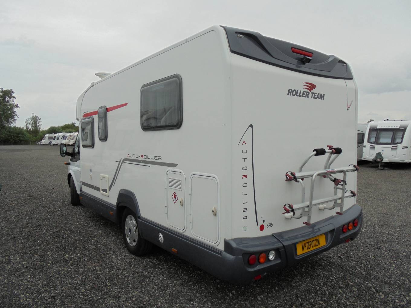 This is the Autoroller 695 Family model, it is a low profile 4 berth with end bedroom and island bed. It was registered March 2013, with full service history and hab check, it has just 18,082 miles on the clock and is in immaculate condition inside and out. At the rear is the bedroom and under the fixed bed is a garage with good storage space, in the centre is a well laid out kitchen and a good sized bathroom. At the front is the lounge area with large roof light and captains seats. It comes with added extras including satellite TV system, Auto Gas LPG refil system, solar panel and bike rack. It also has cab air con, 4 seat belts, cruise control, rear camera, blown air heating and much more. This is a lovely motorhome, great value and ready to go, call fro more photos and information.