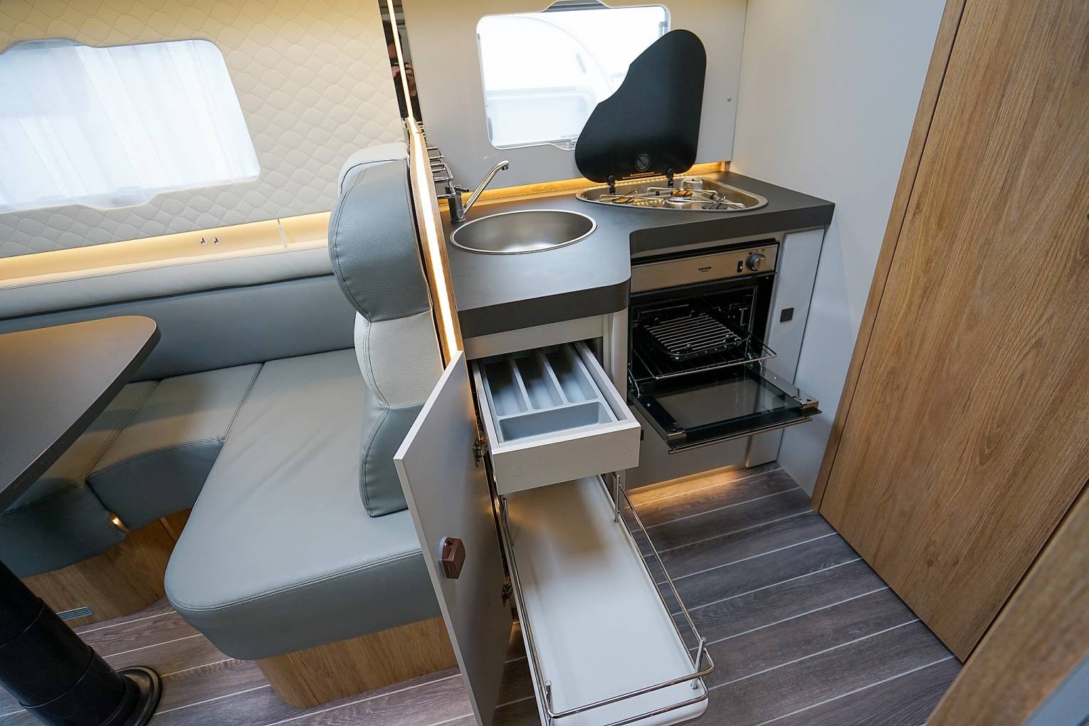 with plenty of space to cook, and a drop-down double bed, meaning you’ll never