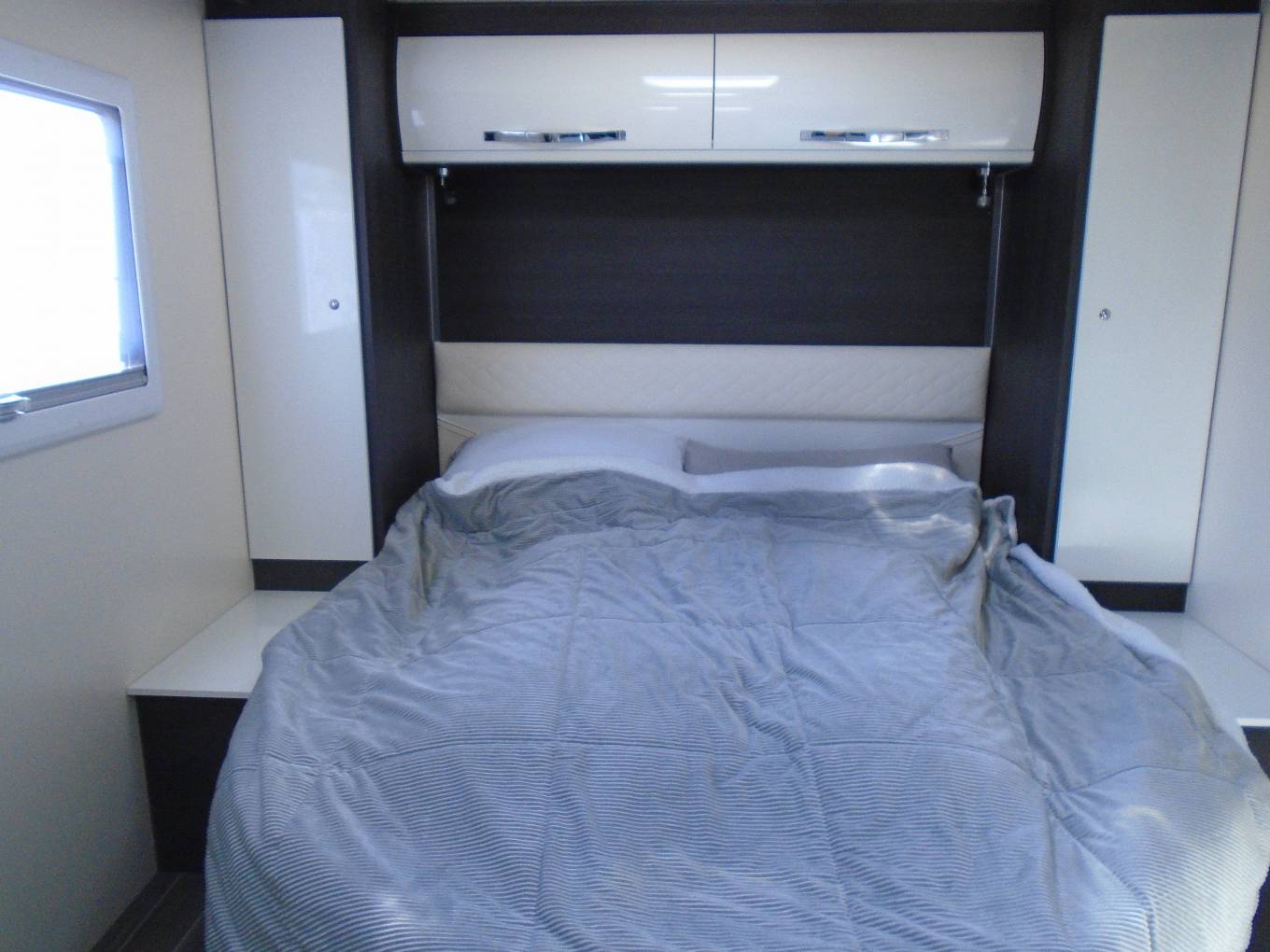 Get the five-star hotel feeling in the Zefiro 696. A rear island bed with under bed storage, bedside tables and two wardrobes all closed off by sliding door, give a level of privacy and peacefulness usually only ever dreamed of when away in a hotel. Just in front of this, you’ll discover the domestic style shower cubicle separate from the remainder of the bathroom. The popular L-shaped lounge area, dressed in fine Paola soft furnishings, creates seating for up to five people during the day, offering a homely space for relaxing and entertaining. Come night-time, a second double bed from the delicate body curves of the Zefiro 696 lowers down above the lounge using a smooth, electric mechanism. This is the best of luxury motorhomes and not even 3 yrs old already with only 20k miles on the clock and fully serviced with current habcheck in place.