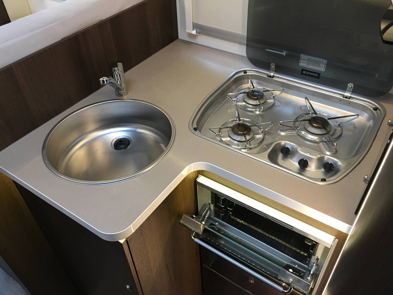 • Three gas hob burners • Dometic combination oven • Stainless steel sink •