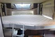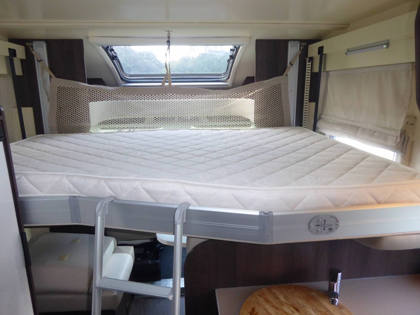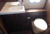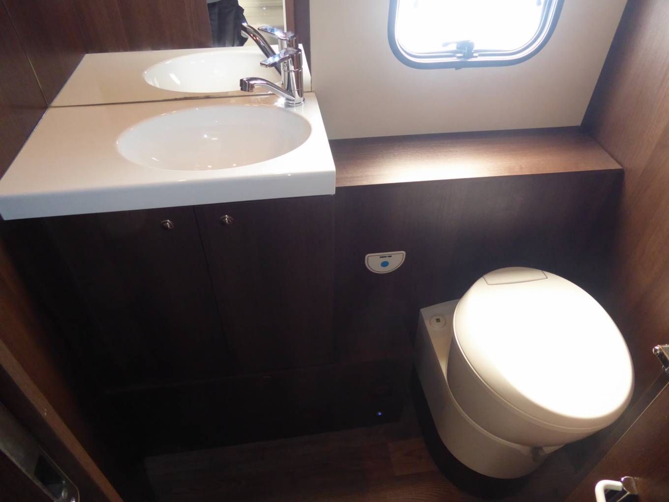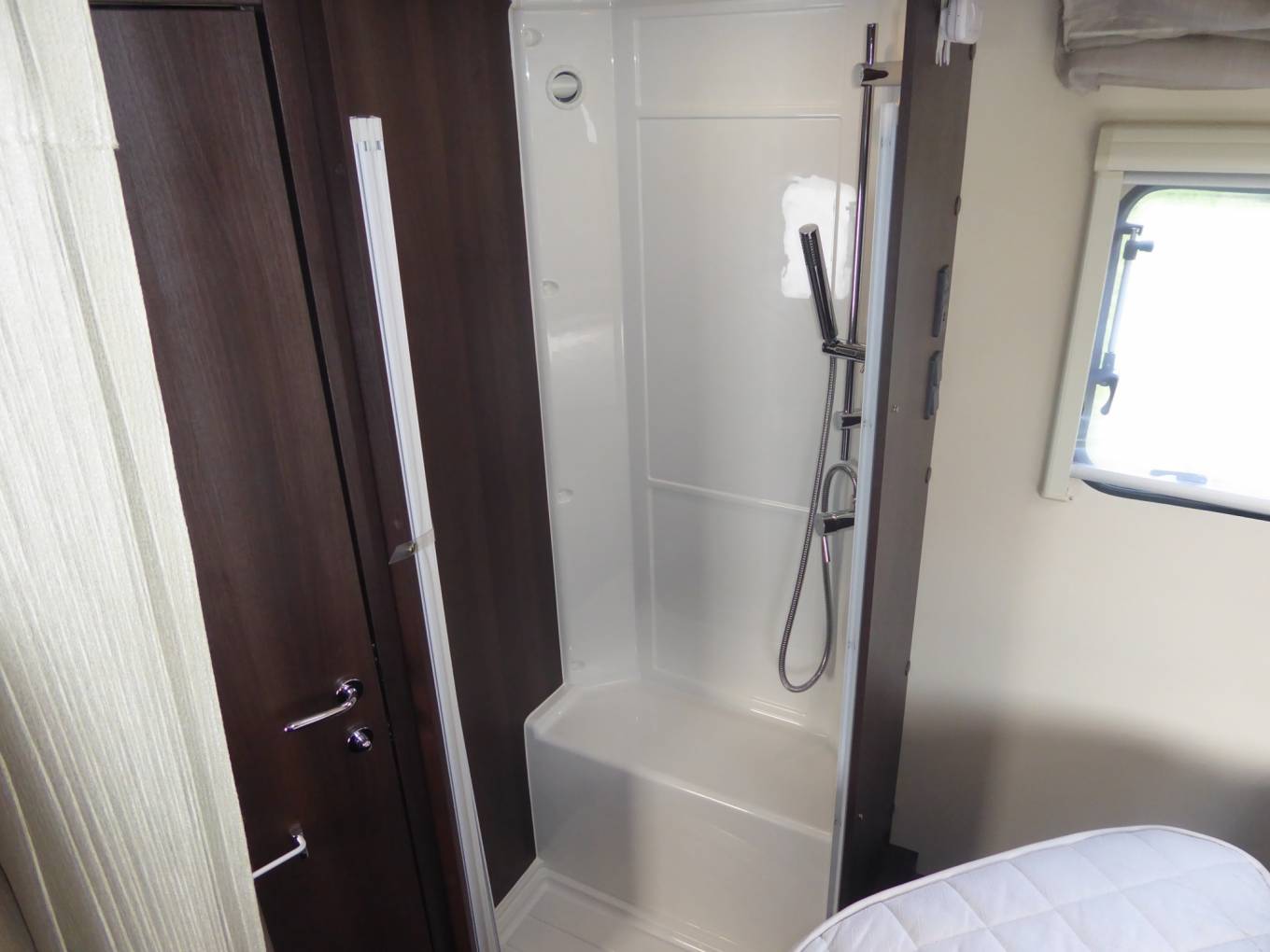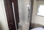 At the rear of the vehicle, which can be screened off for privacy is room with a toilet and hand basin, and, on the other side of the habitation, a separate shower compartment. These are located next to a fixed island bed, which itself lies above an internally or externally accessed storage area.