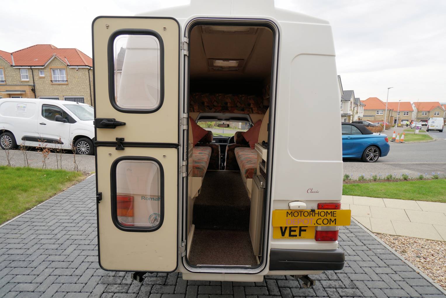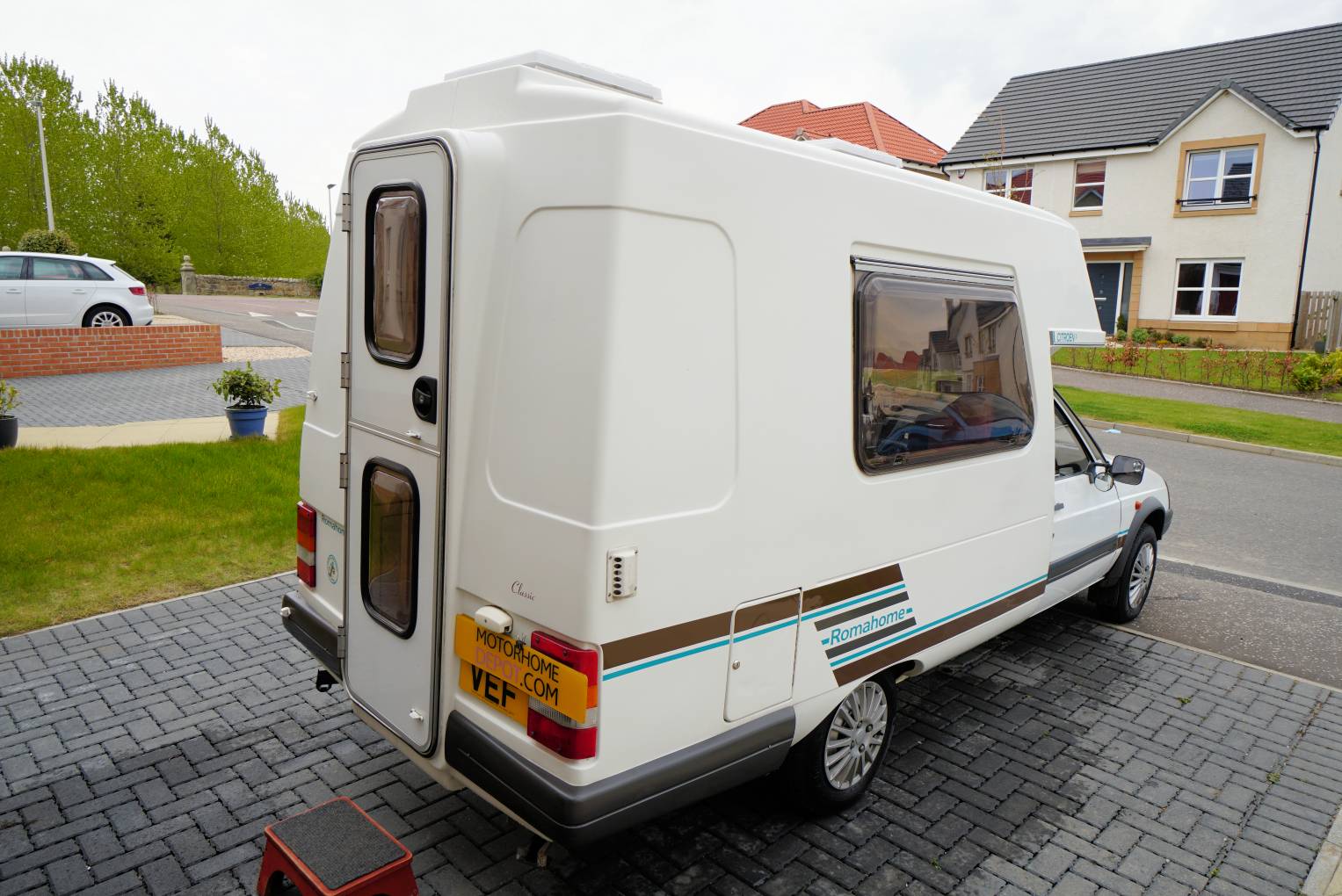 For sale we have this cracking Romahome C15 Hytop, 2-berth, compact motorhome. Bases on a Citroen C15 with a 1.8ltr engine and 5-speed gearbox. Entrance to the motorhome is at the rear and you step into the kitchen area, complete with 2-burner gas hob, grill, sink with cold running water, 3-way fridge and plenty of storage space. Step up into the lounge area with two bench seats that can be used as two single beds or made up to a large double bed. There is Propex gas blown air heating and the upholstery is in lovely condition. Very low mileage and although 21 years old is in very good condition inside and out. This is a perfect compact, go anywhere motorhome for a couple, perfect for daytrips, weekends or longer. Add a porta-potti and off you go.