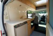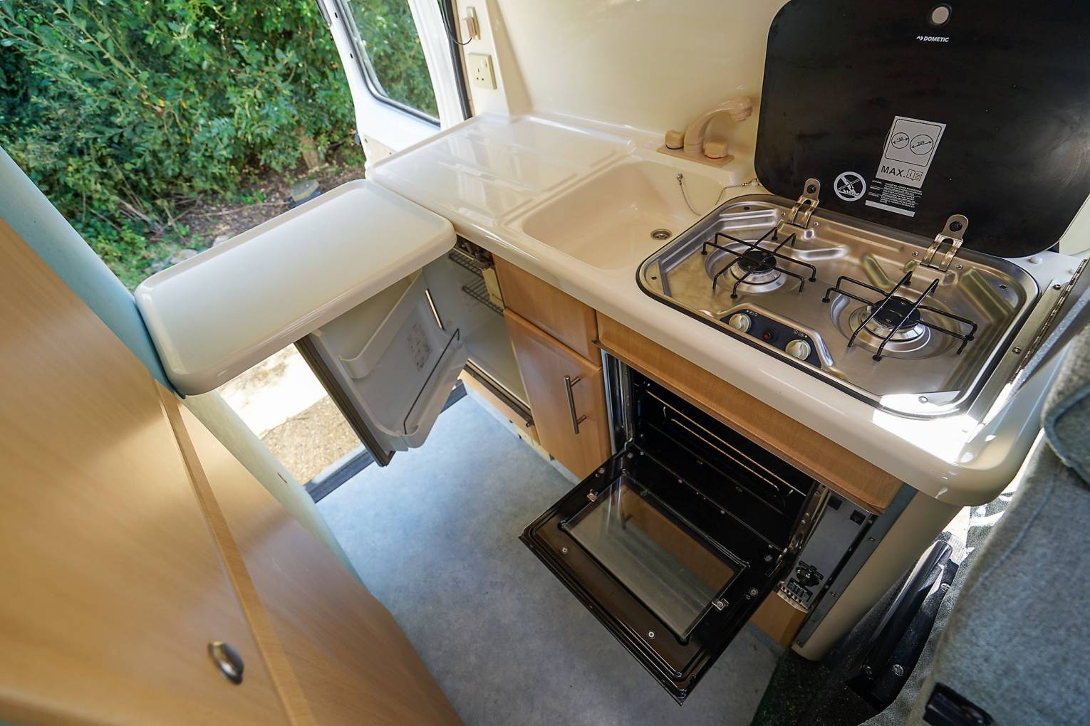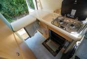 At the rear of the van is a kitchen with 2-burner hob, SMEV