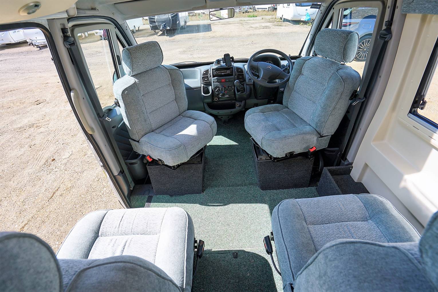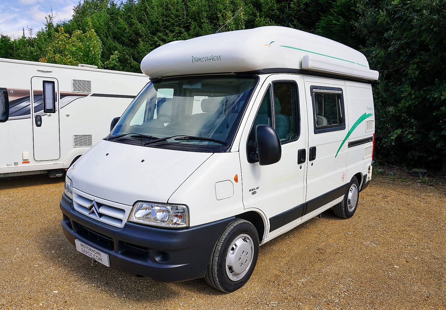 2004 Romahome Dimension 2 Berth high top Campervan with 4 travelling seatbelts. Self-contained with Kitchen, shower and Toilet this is possibly one of the best compact campervans around. Comes with Wind out awning, Avtex TV/DVD, Ariel, Diesel heater on board Fresh & waste water tanks. Remis Blinds to the Cab windows, Black blinds and flyscreens to Habitation Windows, Spare wheel.