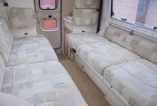 Layout rear door and kitchen, central lounge and dining area can be used as twin single beds or easily converts to a double bed.