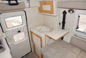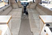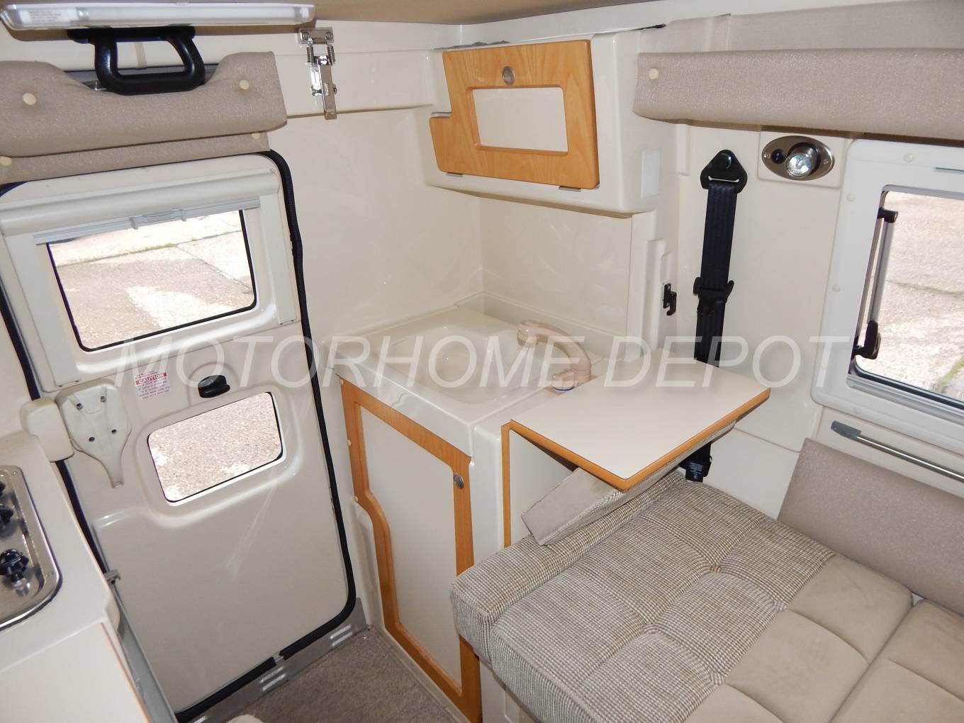 The lounge and dining area comprises of two parallel sofas that can be used as single beds or can make up into a large double bed. A large dining table is stored above the cab and there is plenty of under-seat storage available. Fluorescent lighting, a 230v socket and a 12v socket outlet available. A brand new 230v fan heater is also included.