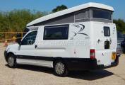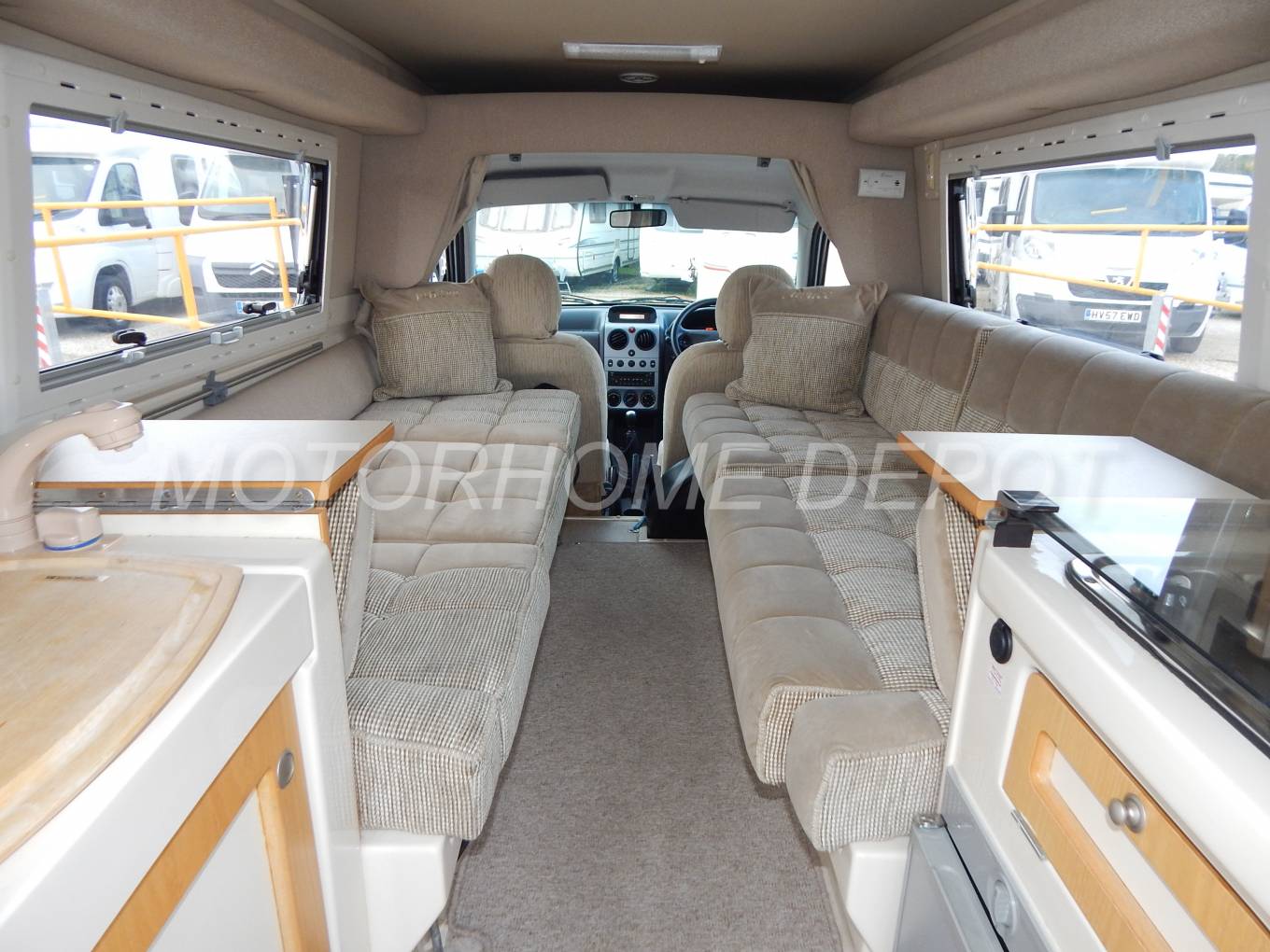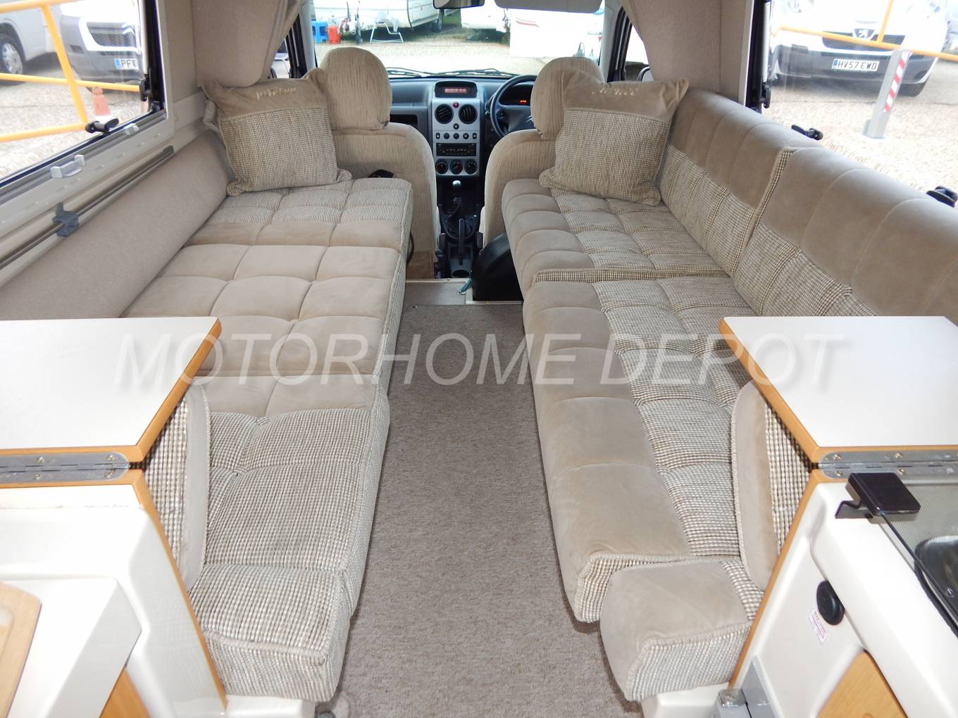 This 2 berth campervan has 4 travelling seats with seatbelts, the nearside bench sofa has a removeable cushion so that the additional passengers can sit comfortably. You could purchase a drive-away awning that fits to the rear of the campervan to provide additional living and sleeping space.
