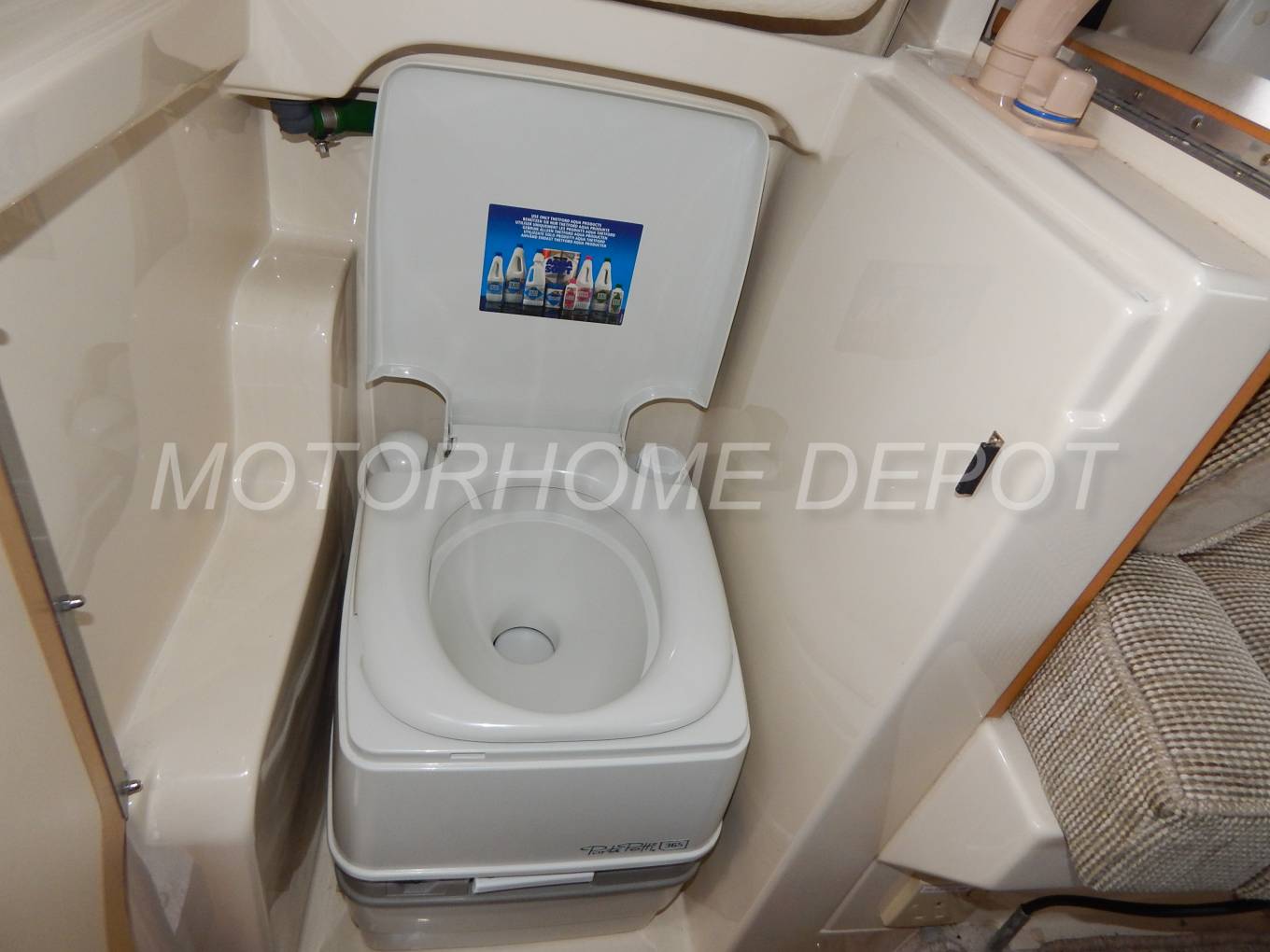 If you tilt-up the sink and store in its upright location and open the cupboard door, you'll find the Thetford 165 Porta Potti toilet, which can be used in situ.