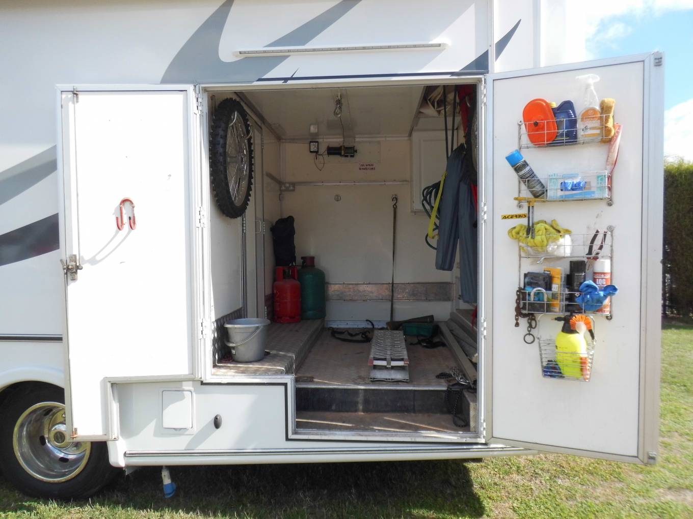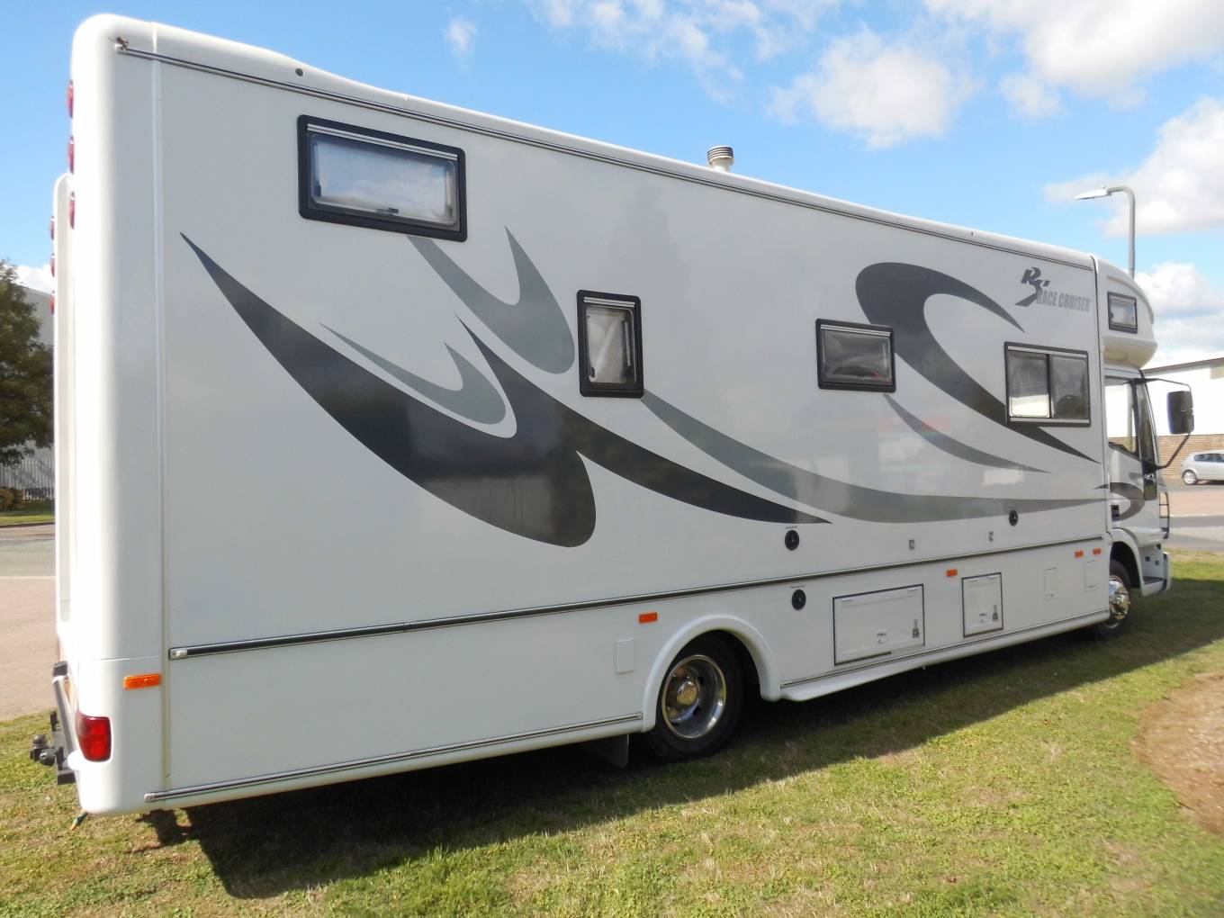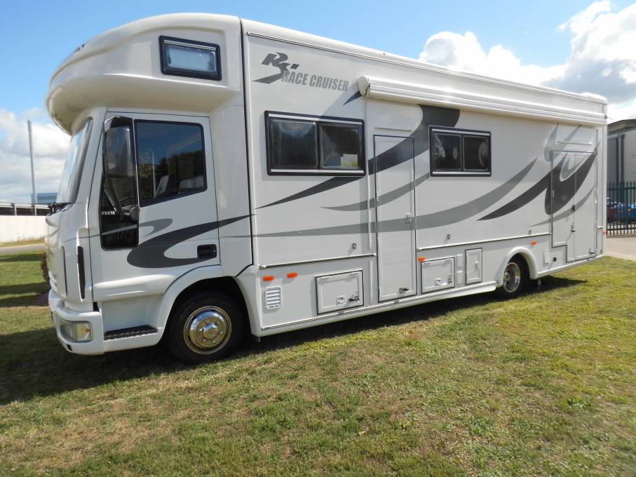 This is a rare opportunity to buy a recently refurbished 7500 tonne 1998 RS Race Cruiser, it has seven berths and 7 seat belts and is built on a Ford Iveco Cargo 75E15 chassis with a 6 speed manual gearbox. It has covered 199,512 kilometres (123,971 miles). A main reason to buy an RS Race Cruiser is for the massive rear garage with double fold-back doors, which this has with checker plate flooring, wheel racks, storage units and loads of space for tools, spares and race gear and includes a 3000lbs winch. Access to the garage can be made from inside the living area.The garage is large enough to hold 3 motocross bikes, or a sidecar outfit, or quad bike, or 8 mountain bikes or a race kart.