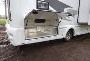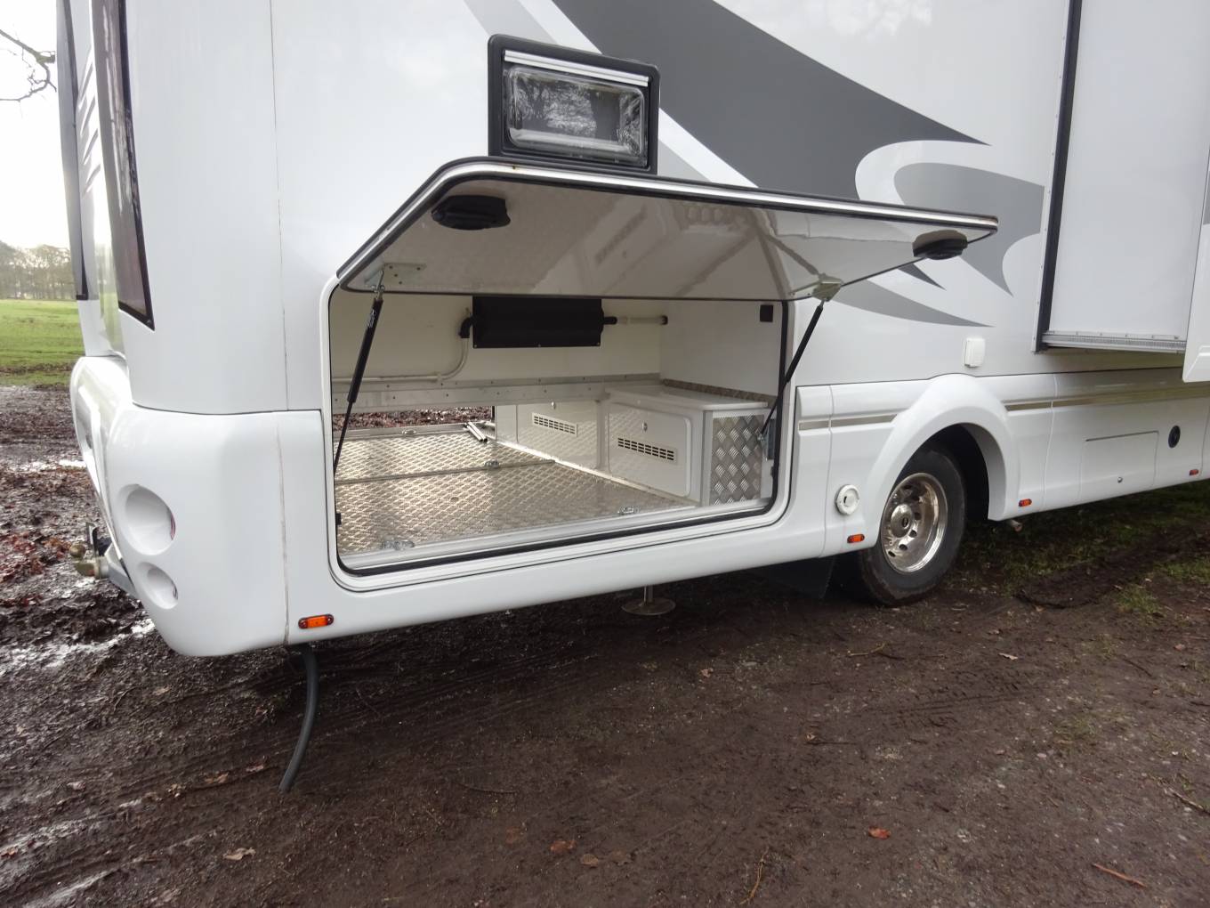 Fitted with a towbar, you can choose whether to take a car, boat, motorbikes, jet ski's, bikes or go-karts, meaning the habitation area takes advantage of the plentiful space, made even better with the electric slide-out side.