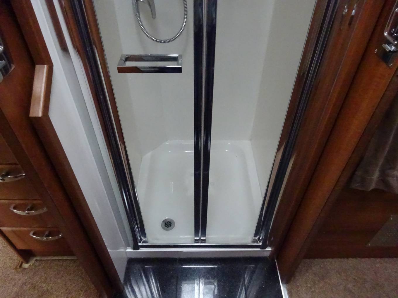 The centre of the vehicle houses the generous washroom and shower room, which are two separate rooms, which through the door system can also make one much larger room. There is also plentiful drawer and wardrobing space in the assigned dressing area.
