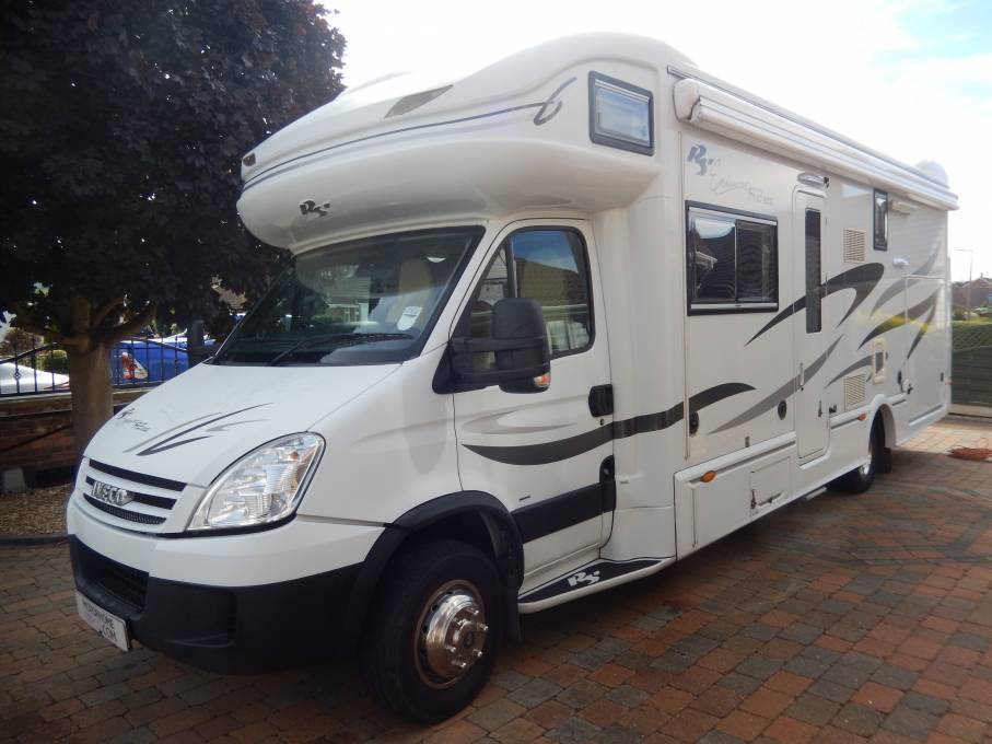 Welcome to the sale of this stunning 2009 RS Endeavour R2 30G based on a 3.0 Iveco diesel with an automatic gearbox. The main feature of this luxury motorhome is its extremely large rear garage which is big enough to fit 3 full sized motocross bikes. Above this area you have a large rear fixed bed where 2 of the 6 berths are catered for, in this area you also have lots of storage space. Stepping out of the fixed bed you have your spacious washroom that includes a sink with taps, toilet cassette, heated towel rail and separate shower cubicle. Moving forwards you have your kitchen area where there is a sink with taps, full oven with hob and grill, an extractor fan, microwave and full size fridge freezer. In the dinette area you have a 4 seater dinette with an additional 4 seatbelts, therefore allowing 6 people to travel in total and also a long bench. The final of the berths are catered for in the overcab bed area. This motorhome is fully kitted out with an onboard generator, jet wash tanks, Alde heating, full GH awning and many more things. I can not stress enough the excellent condition that this RS is in with the current owner always keeping it clean and tidy. For more information or the extended photo file please email or call Aston Marsh on 01623 900063 or 07580 001385.