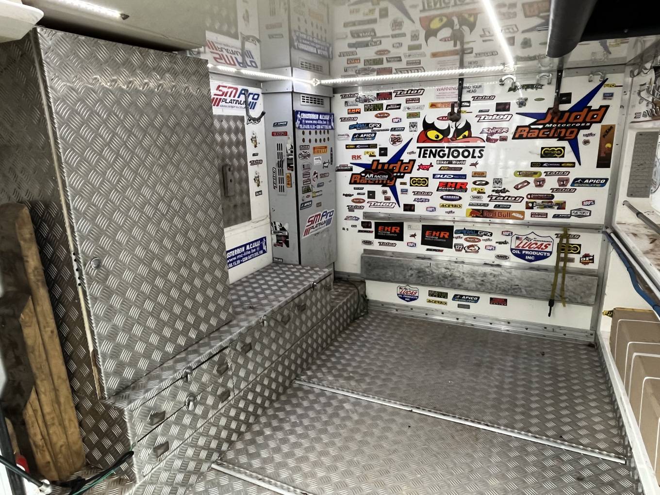 lockers and draws for storing parts and tools. An onboard jet wash tank for post-race