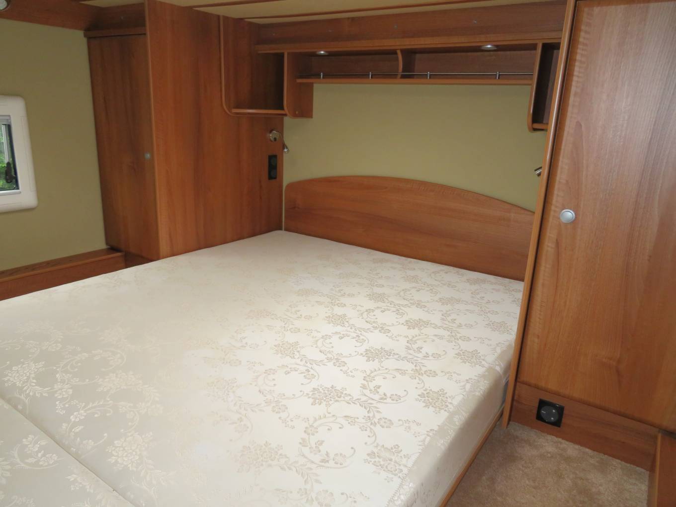 beneath at the rear. The bedroom has two wardrobes and storage under the