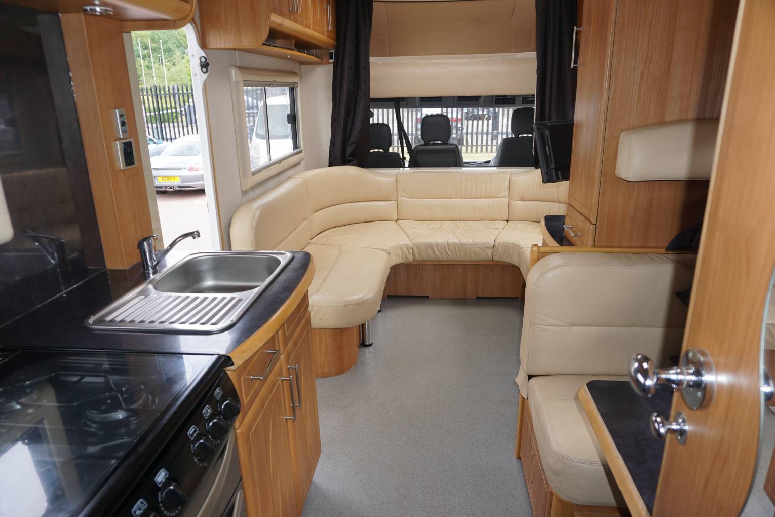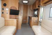 This 7/8 Beth RS comes packed with the usual RS goodies and storage. This first of the large double beds is over the front cab accessed via the u shaped lounge seating. This front u-shape lounge is the perfect relaxing area after a hard days racing, this also converts into the second of the large double beds. Midway down the van is the dinette seating area opposite the fully equipped kitchen. Separate shower to the toilet and sink complete the large washroom. A further double bed above the large garage completes sleeping accomodation. All the specification you expect from RS with large water tanks, on board generator, outside shower, air suspension, GH Jumbo awning, tow bar, bbq point, 2 tv's and Habitation air conditioning.