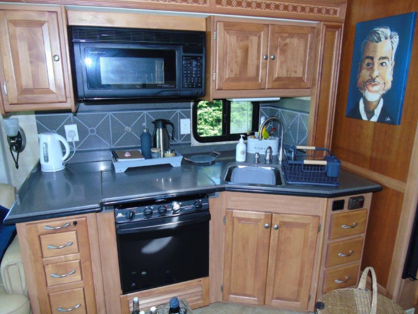 with an ice maker, 3 burner gas hob and full size oven, microwave and an extendable