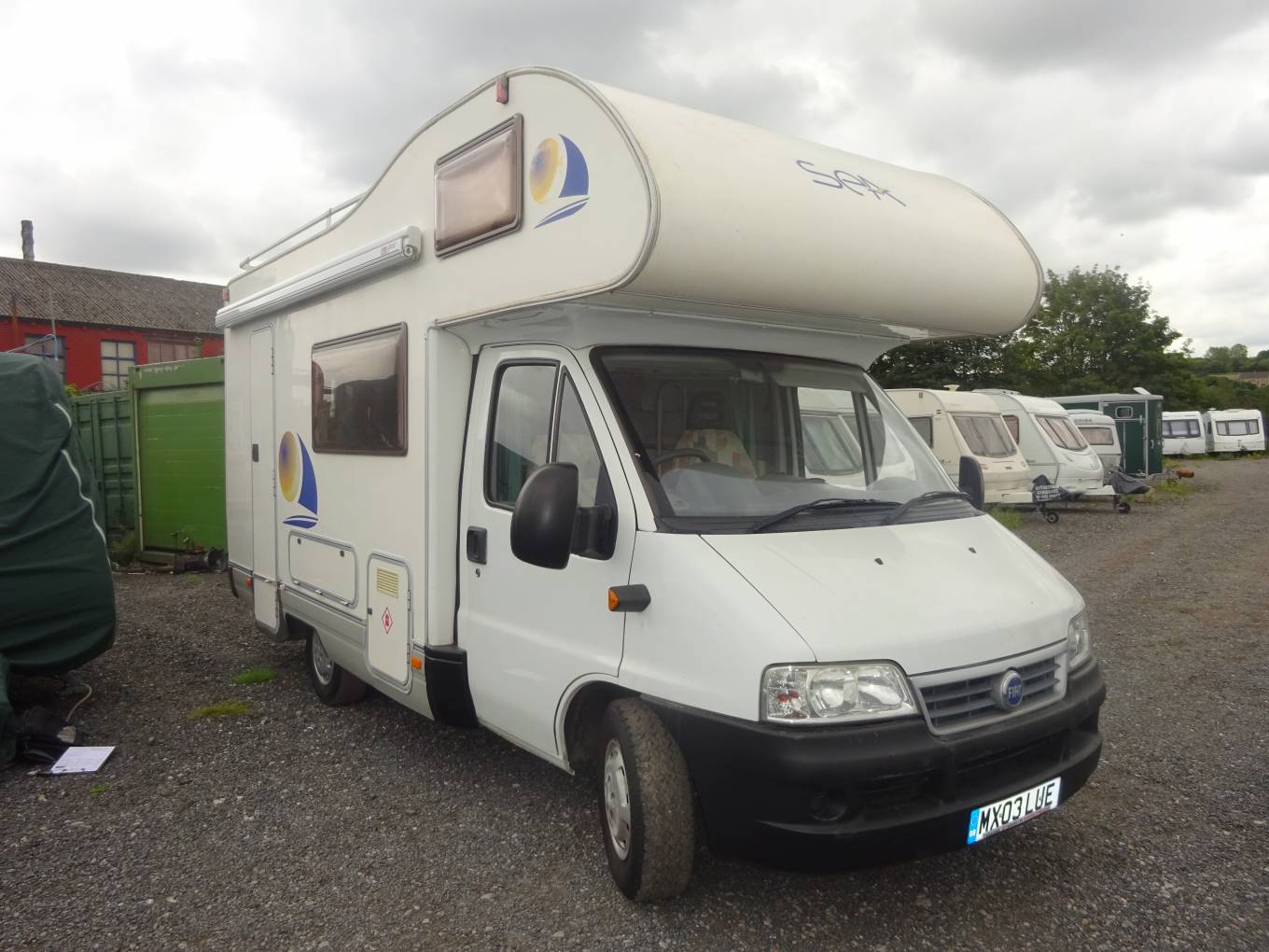 Motorhome Depot presents this 2003, 4 berth, 4 seat belts, manual, diesel Sea Dinghy on a fiat chassis. Firstly, we start at the end kitchen. The kitchen includes a 3 ring gas burner, wash basin, drainer and 3 way fridge. Adjacent is the washroom this consists of a shower, toilet and wash basin. As we move forward through this spacious and well laid out Motorhome we come to the dinette. The dinette includes a comfortable seating area by day and by night converts into a spacious double bed. Finally, we climb the ladder to a large double over cab bed. Please call Tom on 01144 055993 for more information and the extended picture file.