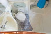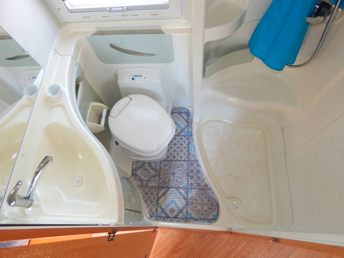 A built-in washbasin with chrome mixer tap, mirror above plus Thetford cassette