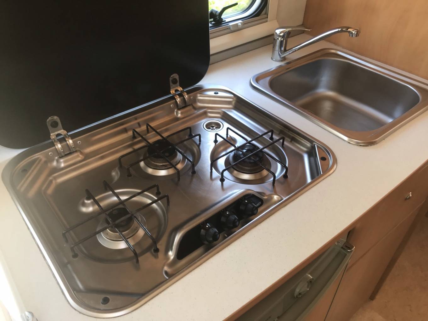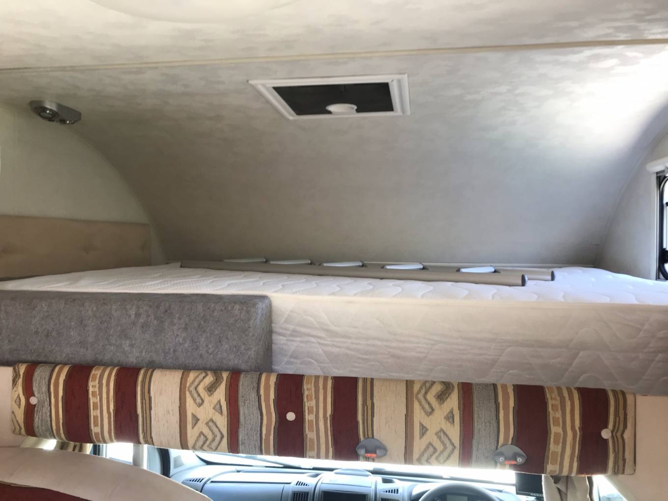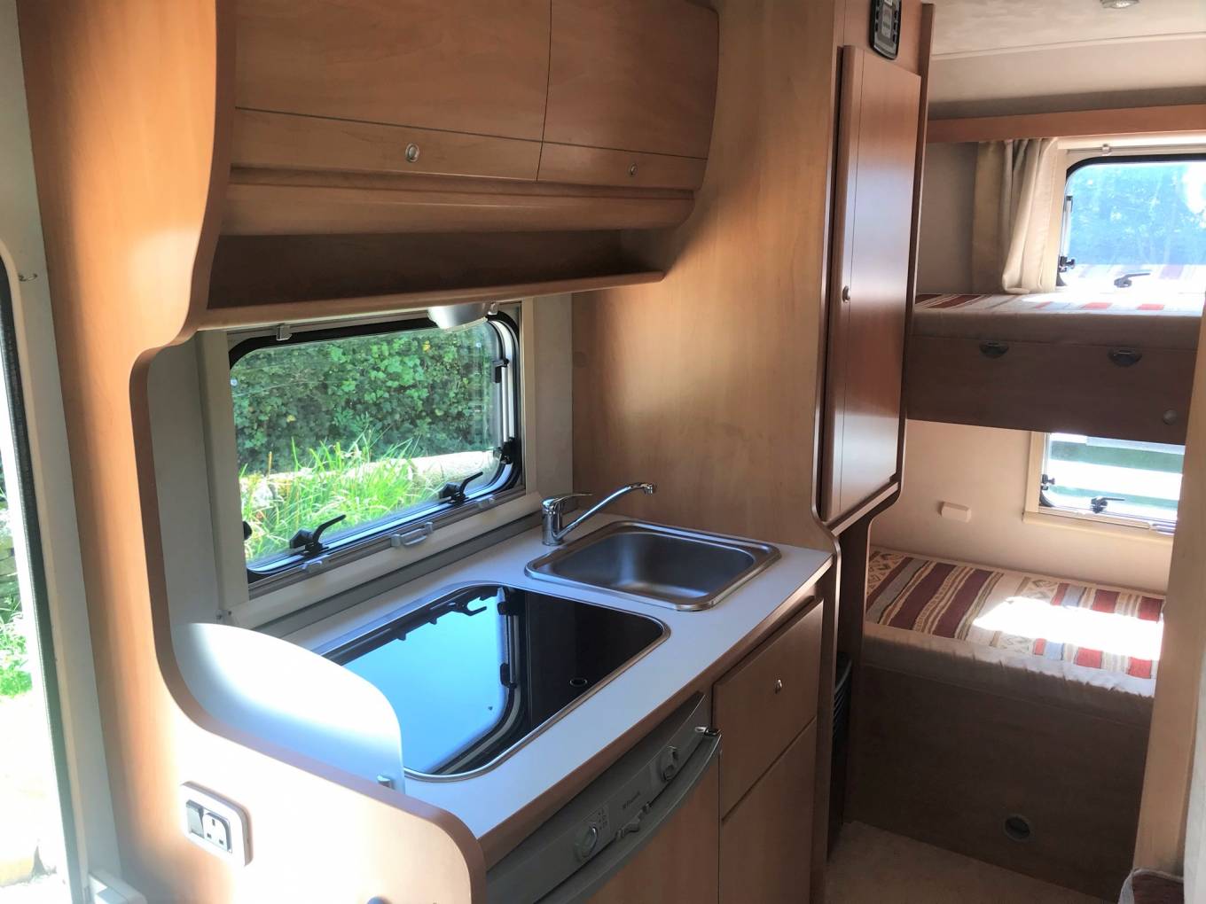 The rear bunks are located in the garage area - enabling you to carry bikes and equipment whilst travelling and the bottom bunk hides away to enable this.