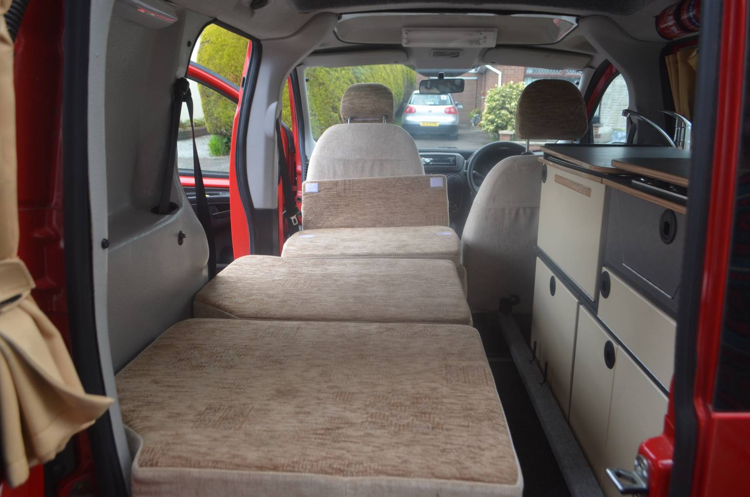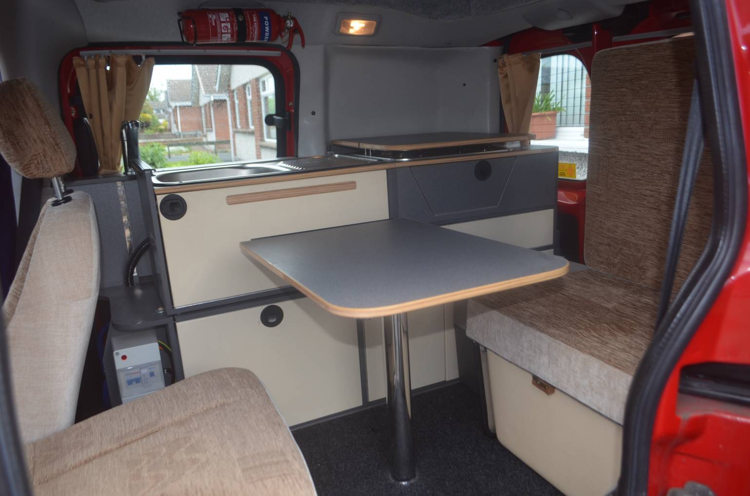 The camper has sleeping places for for 3 people and has 3 travelling seat belts. There is a stowaway table available for dinning. Cab area has power assisted steering, cruise control, electric windows, electric mirrors, radio and central locking.
