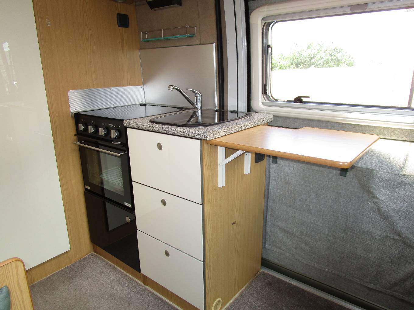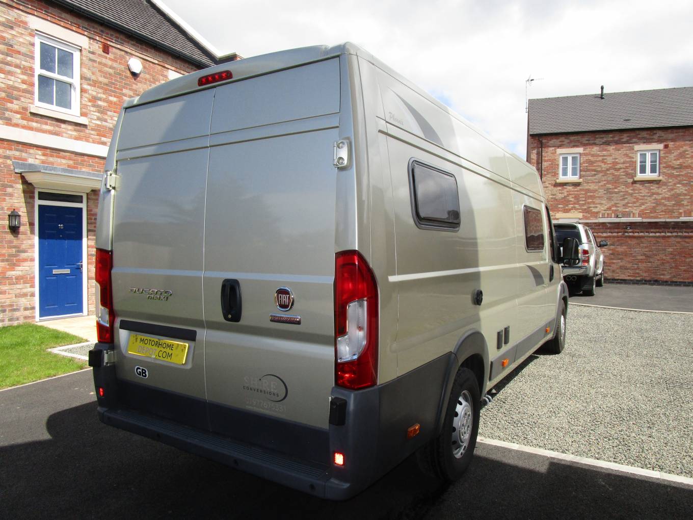 Here we have an absolutely stunning Shire Conversion Phoenix XL that has been specifically tailored for those with an active lifestyle, The rear is taken up by a fixed rear bed that is over six feet long and sits above a large garage area that can easily accommodate three bikes while still having ample storage for other travel essentials. The centre washroom is generous and features a Cassette toilet, Hand basin and shower, moving towards the front we have a Kitchen area that has a huge amount of storage along with a generous fridge with ice compartment, full size cooker and sink. at the front of the vehicle is a lounge area that can comfortably seat four by utilising the two front swivel seats and converts to a single bed by using the third belted seat which is easily removable should there be just two of you travelling. This vehicle also features a Solar Panel, External gas point, External shower point, Air conditioning, Refillable gas, Wind out canopy awning and an electric step.