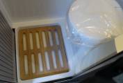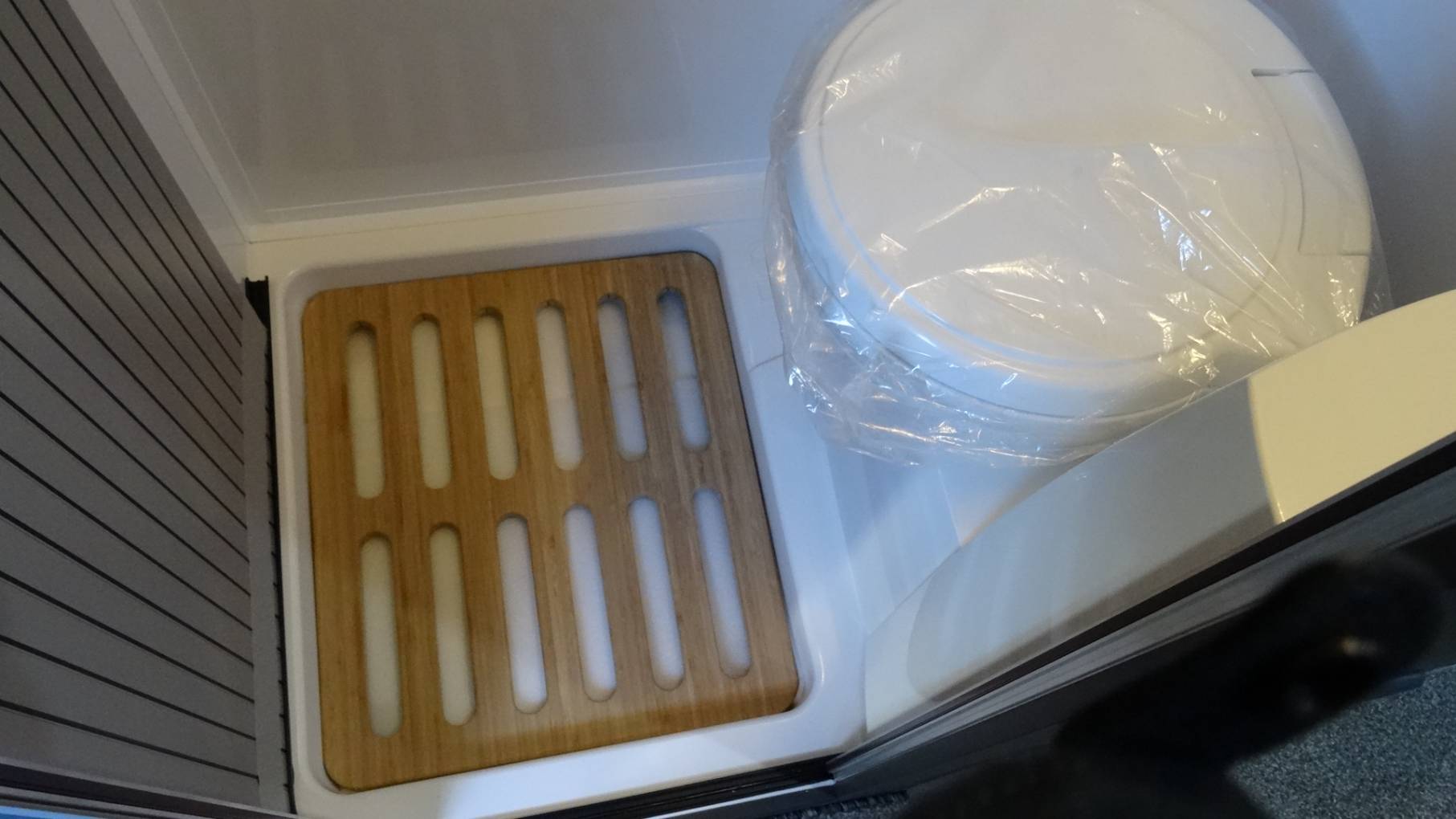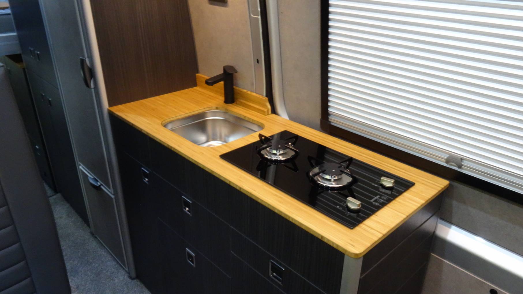 240v hook-up) hidden in a clever cupboard under the hob. There is a huge fridge with freezer and lower