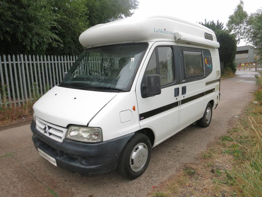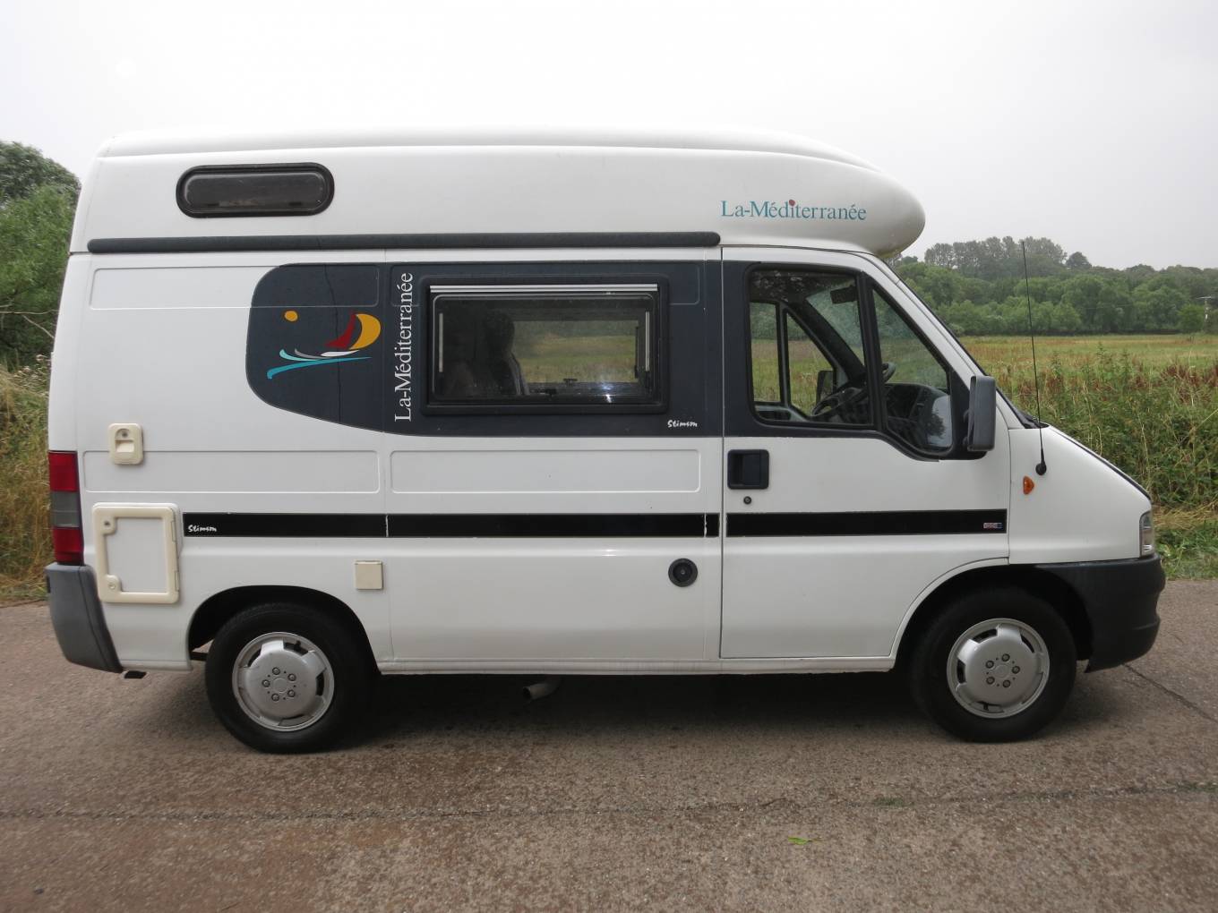 STIMPSON LA MEDITERRANEE 2 BERTH CAMPER VAN BUILT ON THE FIAT DUCATO AND POWERED BY THE 1.9 DIESEL ENGINE, 4 Travelling seats, on board fresh and waste water tanks, Heating, Hot water, Cassette toilet, hand basin, and shower, Galley kitchen with 4 burner gas hob, Grill, sink unit, 3 way fridge, Leisure battery and electric hook up. Sleeping configuration is in the form of 2 single beds, Lots of storage in over head lockers and under floor lockers, External features are cassette awning, tow bar. Originally designed by Romahome this compact camper will fit into a normal car parking space in the supermarket, Great starter vehicle ideal for festivals, fishing trips or just travelling. For additional information, Photographs or to arrange to view this vehicle please call KARL 07906682208. Please note the location of this vehicle is Worcestershire DY13.