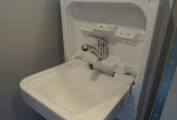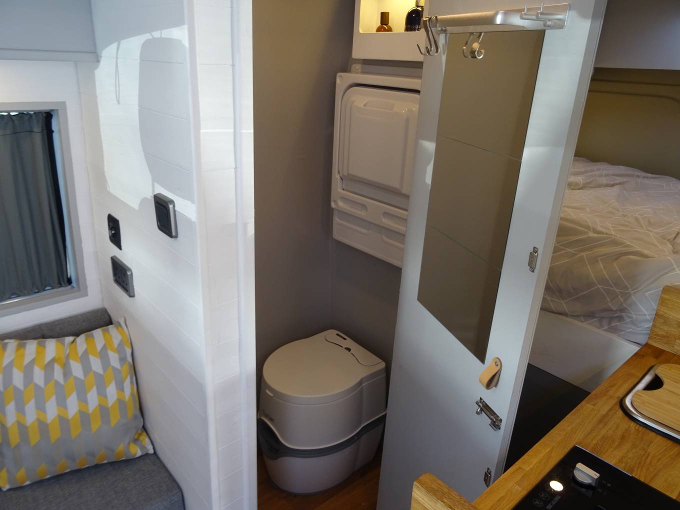 Looking to the rear and on the right hand side is the kitchen area with 2 ring gas hob over a gas oven. Next to the hob is the sink with hard cover over the Dometiq fridge with freezer compartment. There is storage space with eye level lockers down this side of the vehicle. There are LED striplights under these units. Opposite is the door into the washroom with an electric flush Thetford w.c. and a pull down washbasin with mixer tap and a vanity unit above, with a large mirror on the inside of the door. This is a very cosy bathroom with heater output - perfect for drying wet clothes or swimwear after a day on the beach. At the rear is an elevated double bed with separate reading lights above and a skylight with fly and blackout screens. The bed is virtually brand new and is extremely comfortable. There is access to the storage space under the bed or the ability to carry lengthy items. The Avtec TV and DVD is on a particularly large bracket which, when opened permits viewing from all angles in the vehicle. Recessed LED lights in the habitation roof provide more than adequate lighting along with the striplights. The rear storage area accessed via the rear doors contains the gas box with 2 bottles and auto switch regulator and room for all kind of luggage.