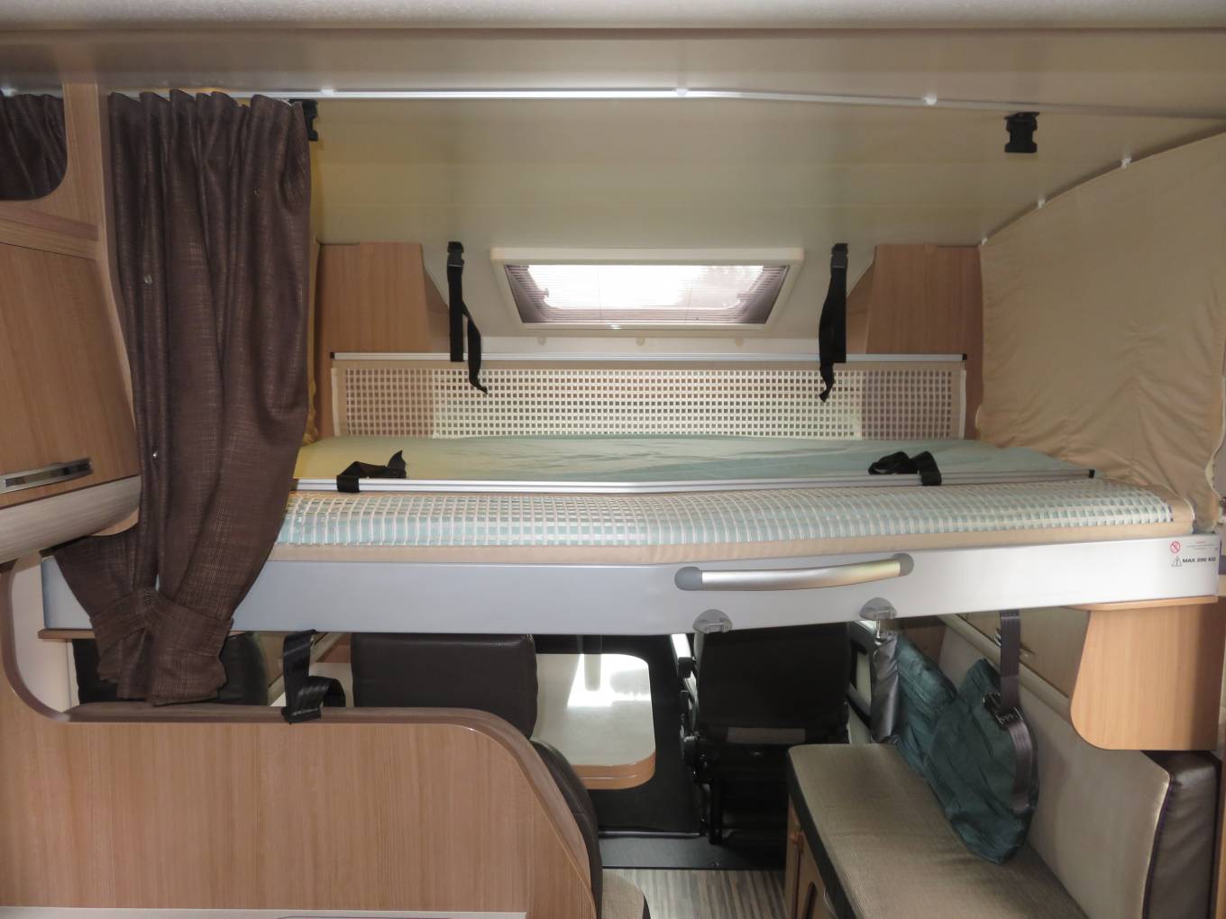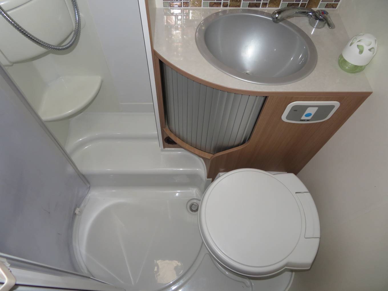 To the very rear of the motorhome is an extremely comfortable transverse fixed double bed - 206cm x 100cm wide. The motorhome hope is a genuine 6 berth with a lovely drop down double (200 x 130cm at widest point) and the lounge sofas making up another double. There is also a centrally located wash room with Thetford Flush Cassette toilet, sink and shower with screen. The Sun Living has hot water and heating running from the Truma Combi system running off gas only.