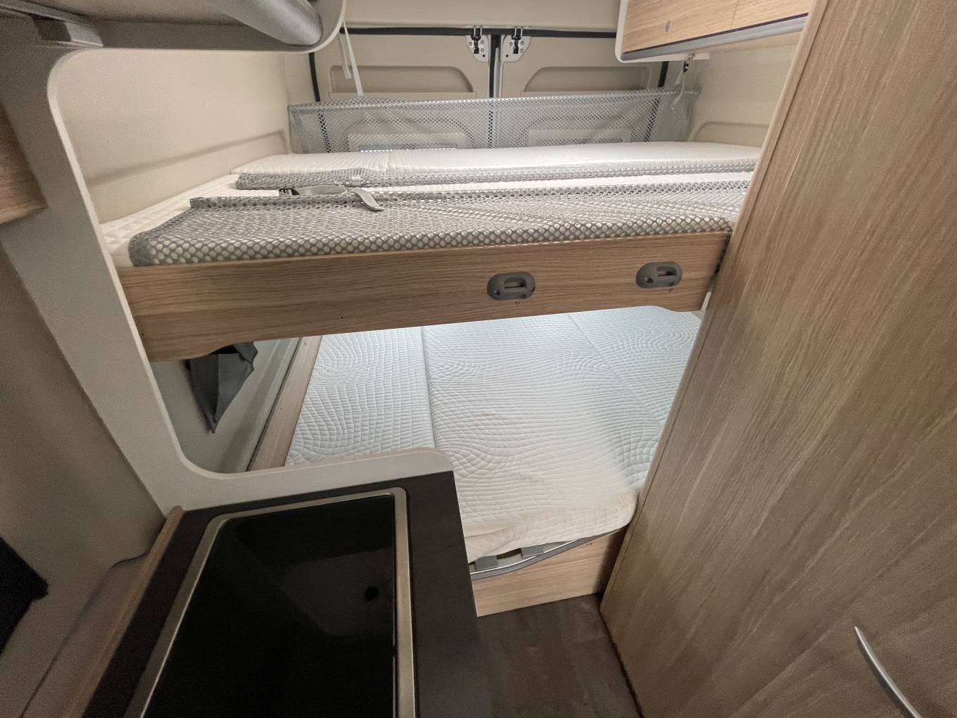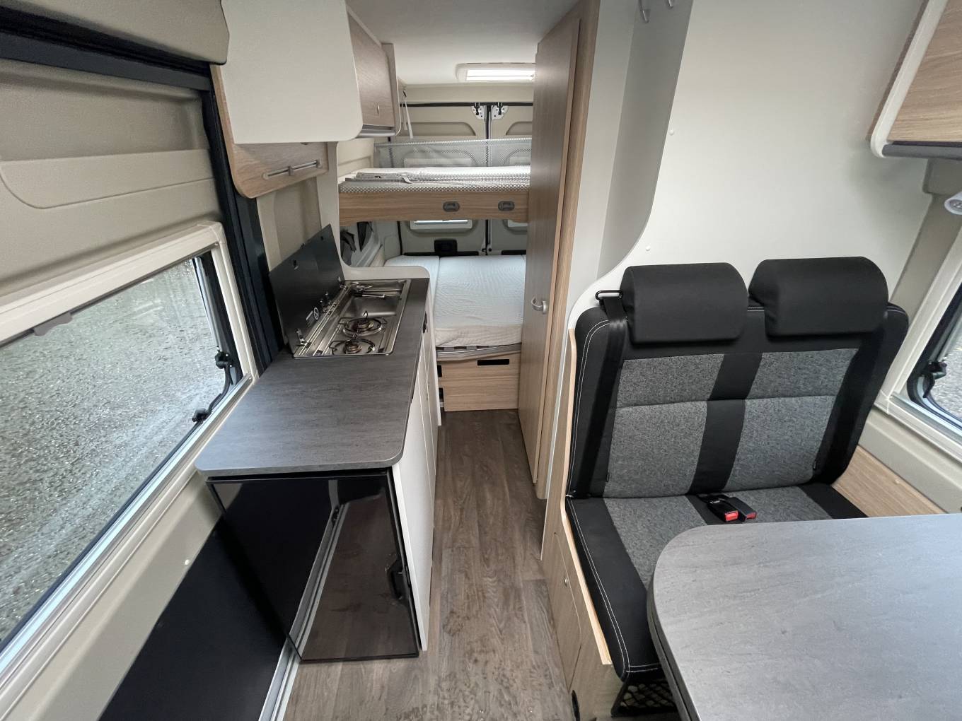 This fantastic 4 berth Campervan built with the usual high standard German build quality. The spacious Sunlight Cliff Campervan is excellent for a family and features an interior packed with the latest technology and with a modern and vibrant interior. The layout is both practical and functional and features a double bed in the rear with another twin bed above