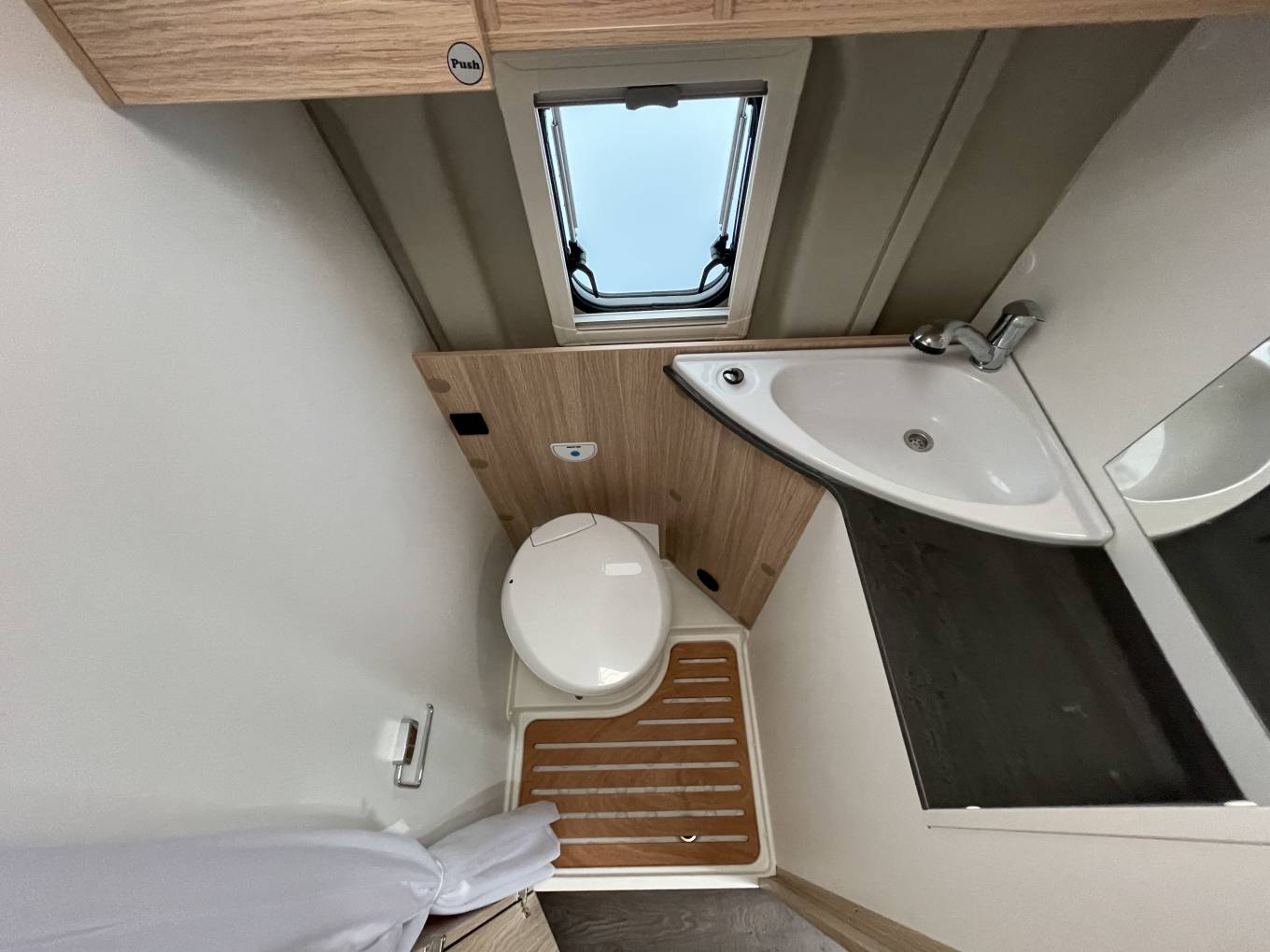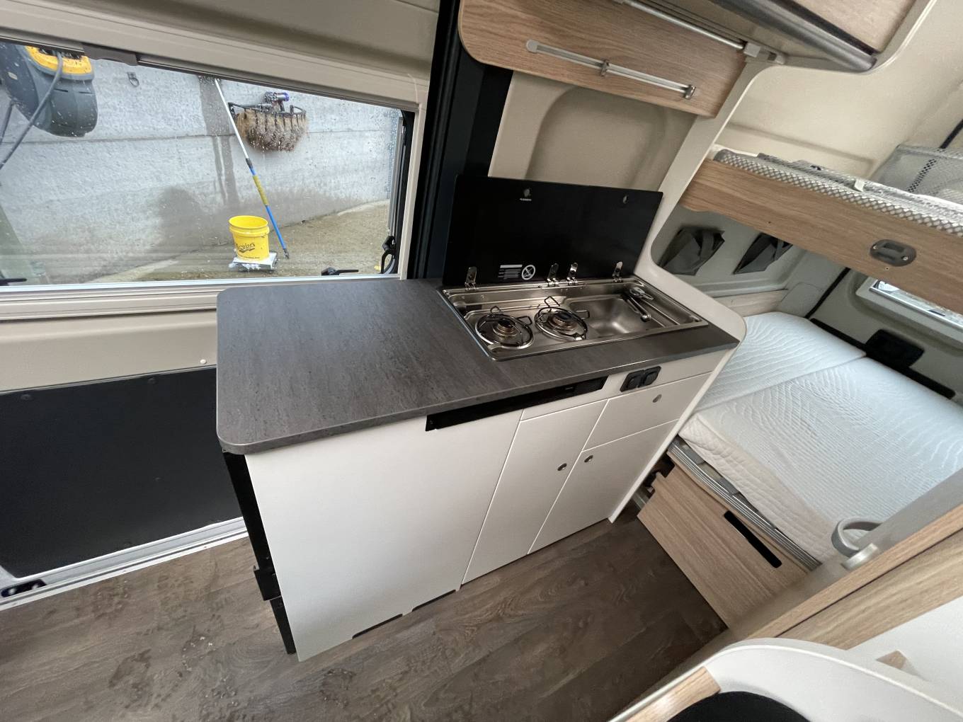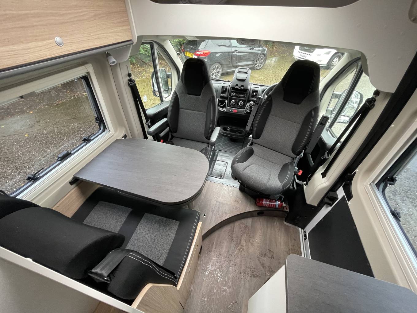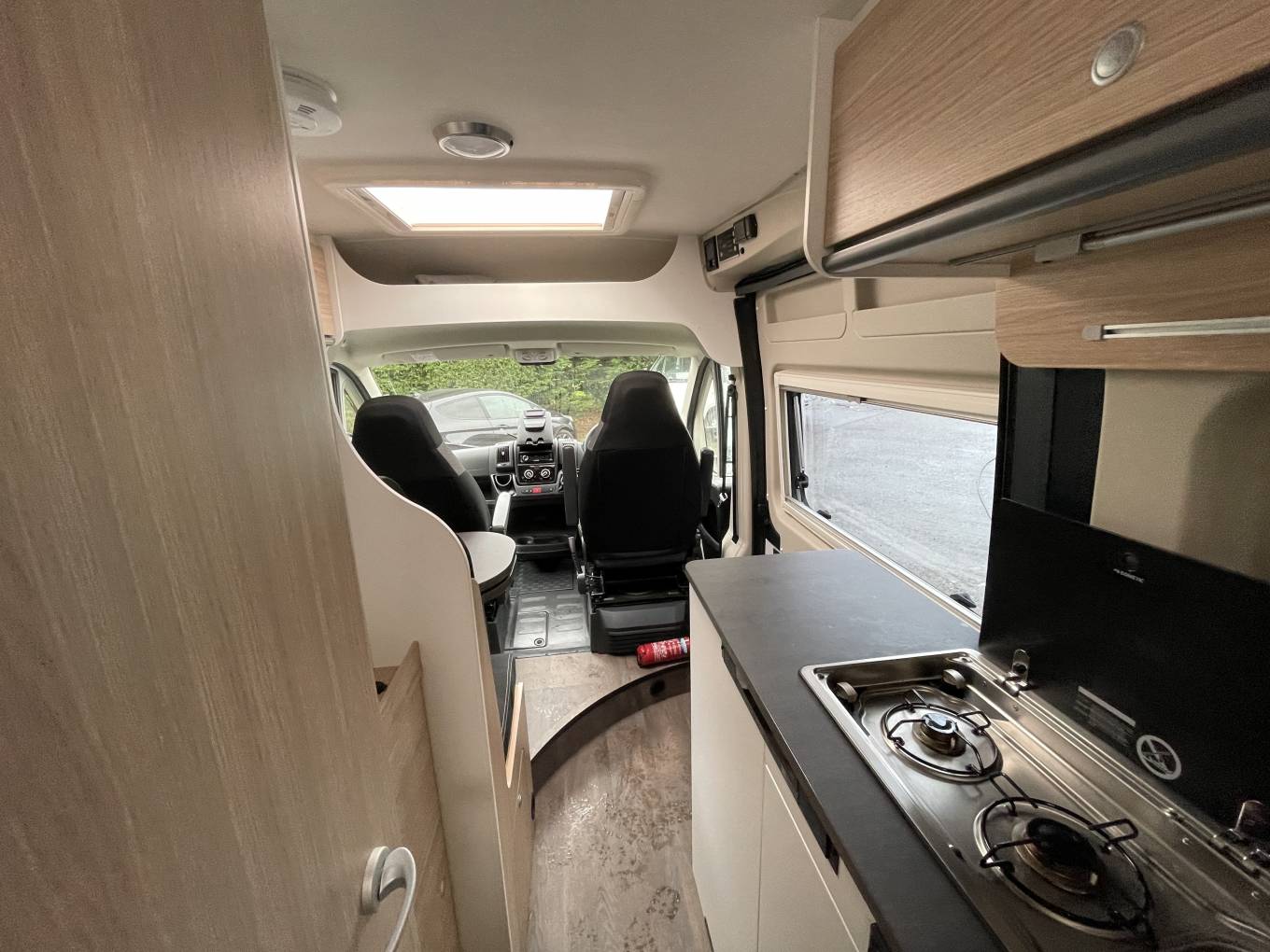 The spacious dinette can seat two people and the front chairs swivel to give you enough seating space for four people. The Sunlight Cliff boasts excellent storage at the rear with enough space for all of your gear and valuables. The bathroom is a good size with a toilet and shower. The Combi 6 boiler operates of diesel.