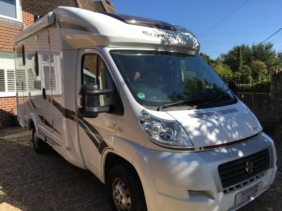 Located in Oxfordshire, this is a well presented and highly popular Sunlight T57 motorhome, part of the German Erwin Hymer group. First registered in May 2013, it is the 3 berth and 4 belt motorhome with the much sort after fixed rear bed over the garage layout. Based on the low profile chassis and Fiat Ducato 2.3 130BHP multijet diesel engine with a six speed manual gearbox. MOT is until May 2020. It has 52,552 miles on the clock and was serviced in May 2018 which included a cambelt change.
